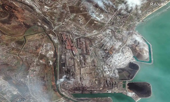 Khói và lửa bốc lên từ xưởng gang thép Azovstal, nơi lực lượng Ukraine tại Mariupol đang đóng quân