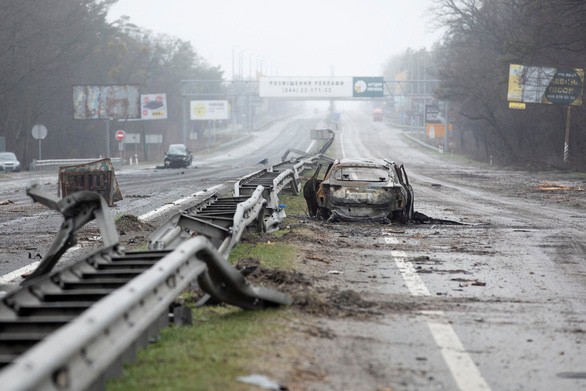 Một tuyến đường cao tốc cách Kiev khoảng 20km bị tàn phá ngày 2-4