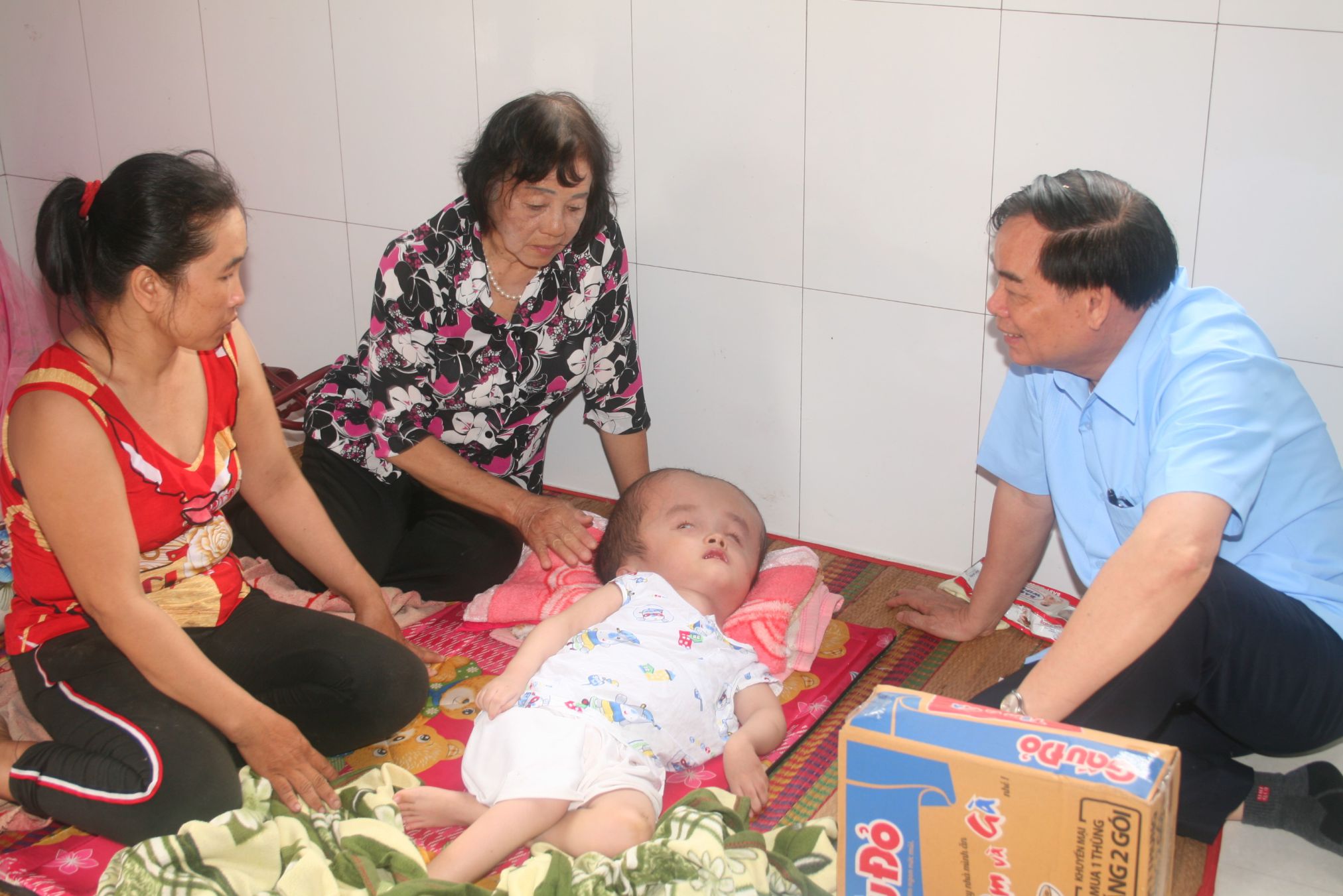 Ông Trần Ngọc Tam, Phó Bí thư Tỉnh ủy Bến Tre và bà Lê Thị Thanh Vân, Chủ tịch Hội NNCĐDC/dioxin-BVQTE tỉnh Bến Tre, thăm tặng quà cho NNCĐDC
