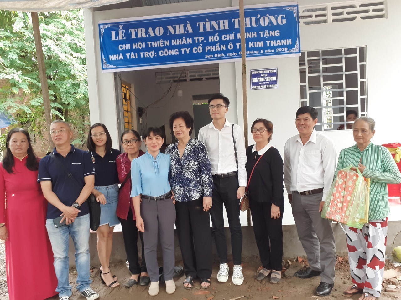 Căn nhà bà Nguyễn Thị Mum, trị giá 65 triệu đồng, nhà bà Nguyễn Thị Phấn, trị giá 75 triệu đồng, trong đó mỗi căn được Hội Bảo trợ bệnh nhân nghèo Thành phố Hồ Chí Minh vận động Công ty Cổ phần Ô tô Kim Thanh hỗ trợ 40 triệu đồng, phần còn lại do gia đình đóng góp. Tại lễ bàn giao, đại diện đơn vị tài trợ và các ngành của xã đã trao tặng những món quà lưu niệm, thể hiện sự quan tâm và chia sẻ khó khăn với 2 gia đình.