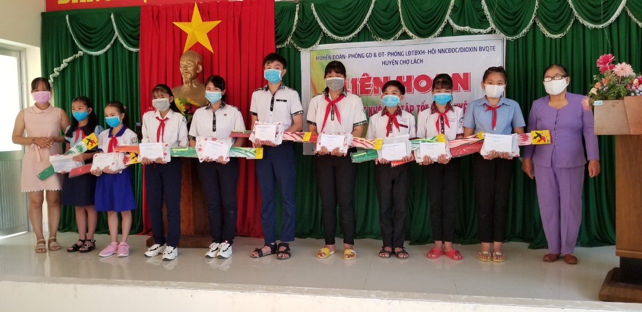 Tại buổi Liên hoan, Ban Tổ chức đã trao 60 suất học bổng năm học 2020-2021 cho các em học sinh, mỗi suất gồm 500 ngàn đồng và 10 quyển tập. Đây là học bổng dành cho các em học sinh có hoàn cảnh khó khăn đã “vượt khó, học tốt và rèn luyện chăm ngoan” trong năm học vừa qua. Nguồn học bổng do Hội NNCĐDC/dioxin - BVQTE huyện vận động.