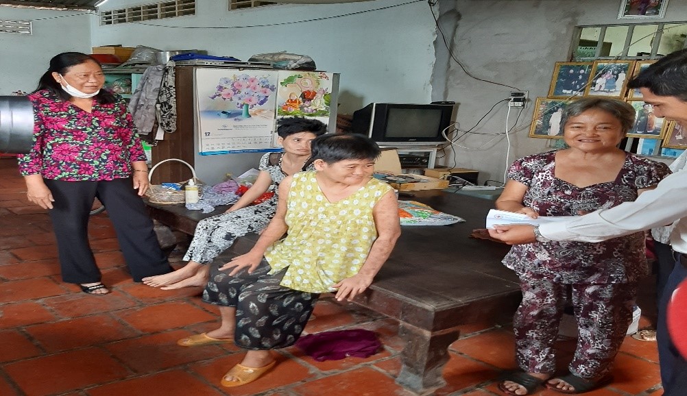 Nhân kỷ niệm 59 năm thảm họa da cam Việt Nam (10/8/1961-10/8/2020), Hội Nạn nhân chất độc da cam/dioxin- Bảo vệ quyền trẻ em tỉnh Bến Tre phối hợp Hội Cựu chiến binh tỉnh Bến Tre đi thăm tặng 20 phần quà mỗi phần quà và tiền mặt trị giá 500 ngàn đồng cho hộ cán bộ hội viên Hội Cựu chiến binh bị nhiễm chất độc hóa học, đồng thời là thương binh ¼; 2/4; ¾.
