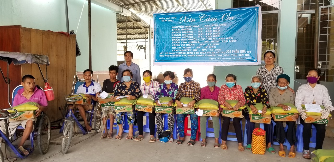 Ngày 30/01/2021, Hội tỉnh Bến Tre phối hợp cùng Hội huyện Giồng Trôm và Nhóm từ thiện Huỳnh Như tp. HCM, trao 100 suất quà tết cho NNCĐDC, người khuyết tật nghèo ở xã Tân Thanh, huyện Giồng Trôm, mỗi phần trị giá là 30 triệu đồng do Nhóm từ thiện Huynh Như tài trợ.