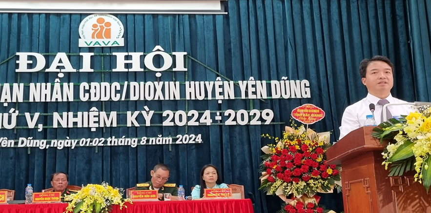 Hướng tới Đại hội Hội NNCĐDC/dioxin cấp huyện, cấp tỉnh, nhiệm kỳ 2024- 2029, Tỉnh hội Bắc Giang chọn Huyện hội Yên Dũng tổ chức Đại hội điểm sau đó rút kinh nghiệm, chỉ đạo tiến hành đại hội cấp huyện. Thường trực Tỉnh hội phối hợp với Huyện uỷ, UBND huyện Yên Dũng cùng Phòng Nội vụ huyện chỉ đạo trực tiếp và tạo điều kiện thuận lợi cho Hội huyện Yên Dũng làm điểm đại hội cấp huyện. Đồng thời Thường trực Tỉnh hội chỉ đạo Huyện hội Yên Dũng chuẩn bị mọi mặt về nội dung, chương trình, kịch bản… của Đại hội, báo cáo cấp ủy, chính quyền và Huyện hội sớm, kịp thời phê duyệt kế hoạch Đại hội. Ngày 1 và 2/8/2024, Huyện hội Yên Dũng tổ chức Đại hội điểm. Dự Đại hội có: Thường trực Tỉnh hội; ông Hoàng Văn Thanh, Chủ tịch UBND huyện Yên Dũng; Lãnh đạo Phòng Nội vụ, Phòng LĐ-TB&XH huyện, các tổ chức đoàn thể chính trị, xã hội, doanh nghiệp; thường trực các huyện, thị, thành Hội trong toàn tỉnh; lãnh đạo UBND xã, thị trấn trong huyện và 90 đại biểu thay mặt cho hội viên toàn huyện.