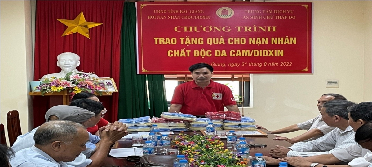 Thực hiện chương trình công tác Hội năm 2022, ngày 31/8/2022 tại Hội trường Hội Nạn nhân chất độc da cam/dioxin tỉnh Bắc Giang tổ chức chương trình trao tặng 100 suất quà cho nạn nhân chất độc da cam, thế hệ thứ 3, 4 nghi nhiễm chất độc da cam có hoàn cảnh khó khăn trên địa bàn tỉnh.