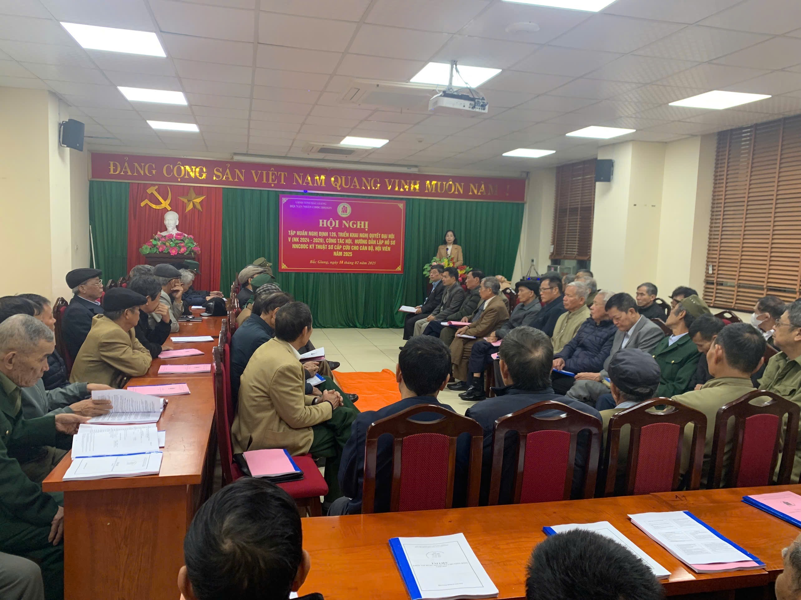 Từ ngày 17 đến 26/02/2025, Hội NNCĐDC/dioxin tỉnh Bắc Giang đã tổ chức 6 lớp tập huấn, cho gần 400 cán bộ chủ chốt ở các cấp hội trong toàn tỉnh. Thời gian tập huấn cho mỗi lớp là 1 ngày, nội dung gồm: Phổ biến quán triệt Nghị định số 126/2024/NĐ-CP, ngày 08/10/2024 của Chính phủ quy định về tổ chức, hoạt động và quản lý hội; Hướng dẫn lập thủ tục, hồ sơ giải quyết chế độ đối với người hoạt động kháng chiến bị nhiễm chất độc hóa học; Triển khai thực hiện Nghị quyết Đại hội đại biểu Hội NNCĐDC/dioxin tỉnh khóa V, nhiệm kỳ 2024-2029; Nhiệm vụ trọng tâm công tác hội năm 2025; Hướng dẫn kỹ thuật sơ cấp cứu các tai nạn thương tích trong cộng đồng.
