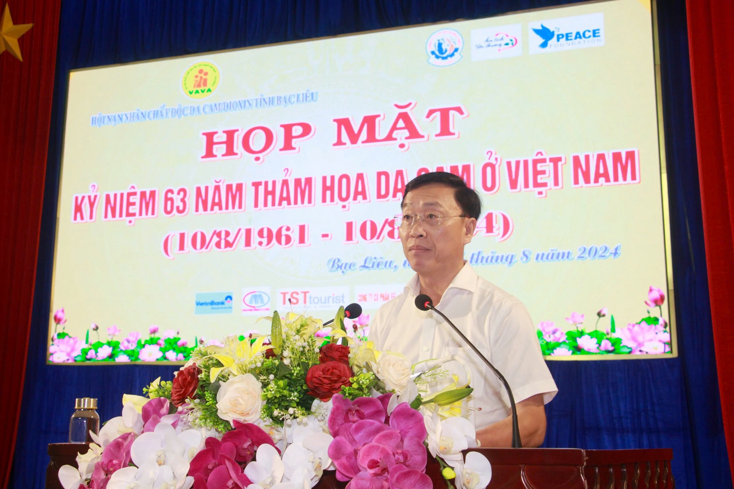 Thay mặt Tỉnh ủy, HĐND, UBND, Ủy ban MTTQ tỉnh, ông Huỳnh Hữu Trí, Ủy viên Ban Thường vụ Tỉnh ủy, Phó Chủ tịch Thường trực UBND tỉnh phát biểu về sự thiệt thòi, đau đớn của NNCĐDC, khi phải mang trong người nhiều thứ bệnh, tật do ảnh hưởng bởi NNCĐDC, đáng lo nhất là những di chứng và sự di truyền qua nhiều thế hệ con, cháu, chắt. Ghi nhận công lao, thành tích và sự phát triển ngày một lớn mạnh của hệ thống Hội NNCĐDC/dioxin trong tỉnh; đồng thời kêu gọi sự quan tâm của các mạnh thường quân, các nhà hảo tâm tiếp tục đồng hành chung tay góp sức xoa dịu nỗi đau da cam.