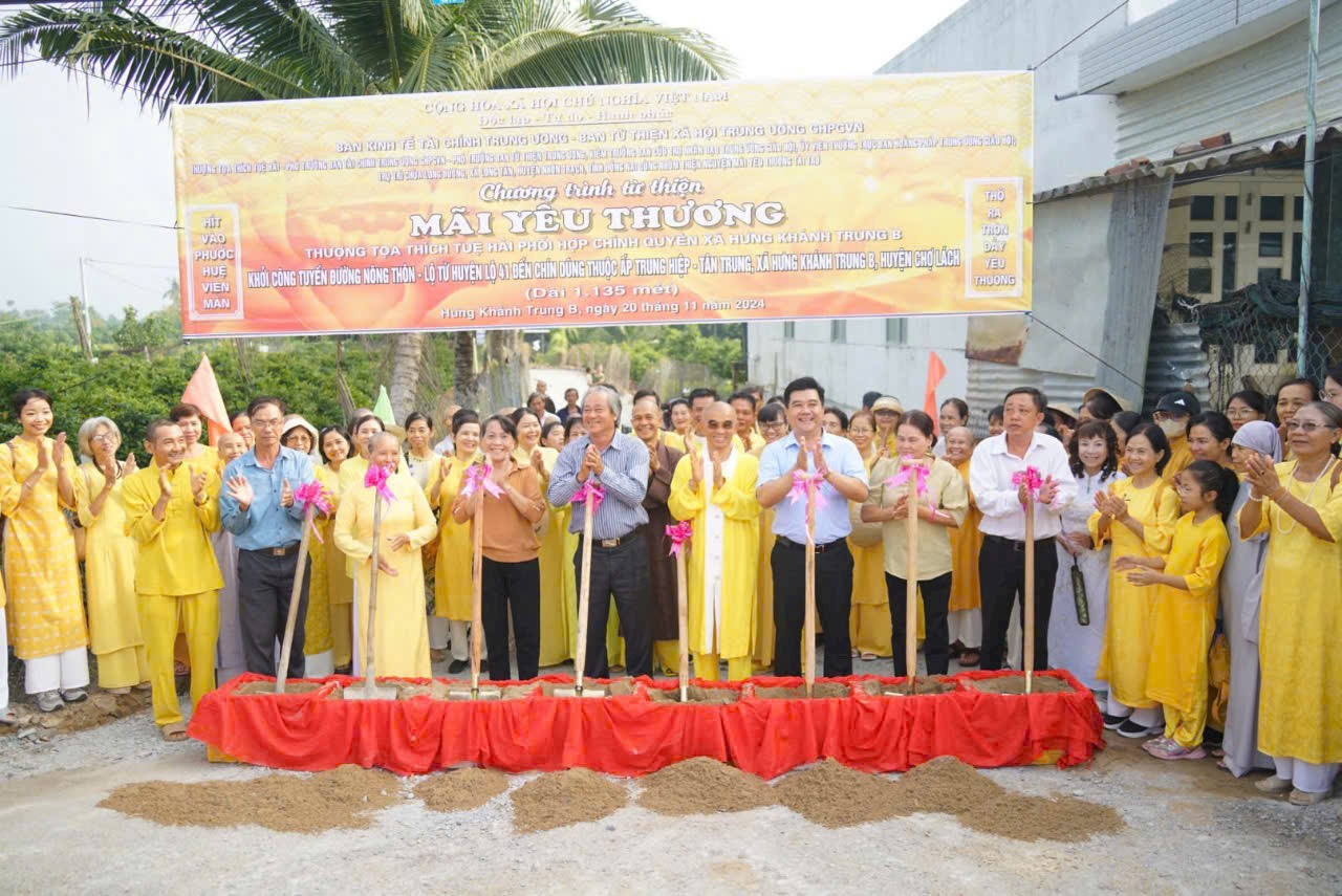 Cùng ngày, các cán bộ lãnh đạo huyện và trụ trì cùng các Phật tử chùa Long Hương đã đến dự Lễ khởi công xây dựng tuyến đường Huyện lộ 41 nối liền 2 ấp Trung Hiệp - Tân Trung xã Hưng Khánh Trung B. Tuyến đường có chiều dài 1.135m, rộng 3m. Tổng kinh phí là 1,6 tỷ đồng, do Nhóm “Mãi yêu thương” hỗ trợ và nhân dân địa phương đóng góp.