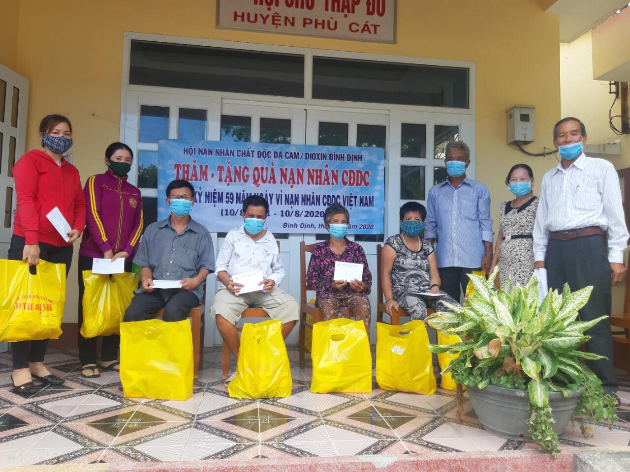 Từ ngày 21/7/2020 đến ngày 10/8/2020, Hội đã phối hợp với Hội cơ sở và chính quyền địa phương tổ chức đi thăm hỏi trực tiếp và tặng 225 suất quà cho NNCĐDC và đối tượng nghi nhiễm tại 11 huyện, thị xã, thành phố, với tổng số tiền và hiện vật quy ra tiền là: 77 triệu 500 nghìn đồng, mỗi suất quà trị giá từ 200.000đ đến 500.000đ. Trong đó Lãnh đạo Tỉnh hội trực tiếp đi thăm, tặng quà cho nạn nhân các huyện miền núi An Lão, Vĩnh Thạnh và huyện Phù Cát.
