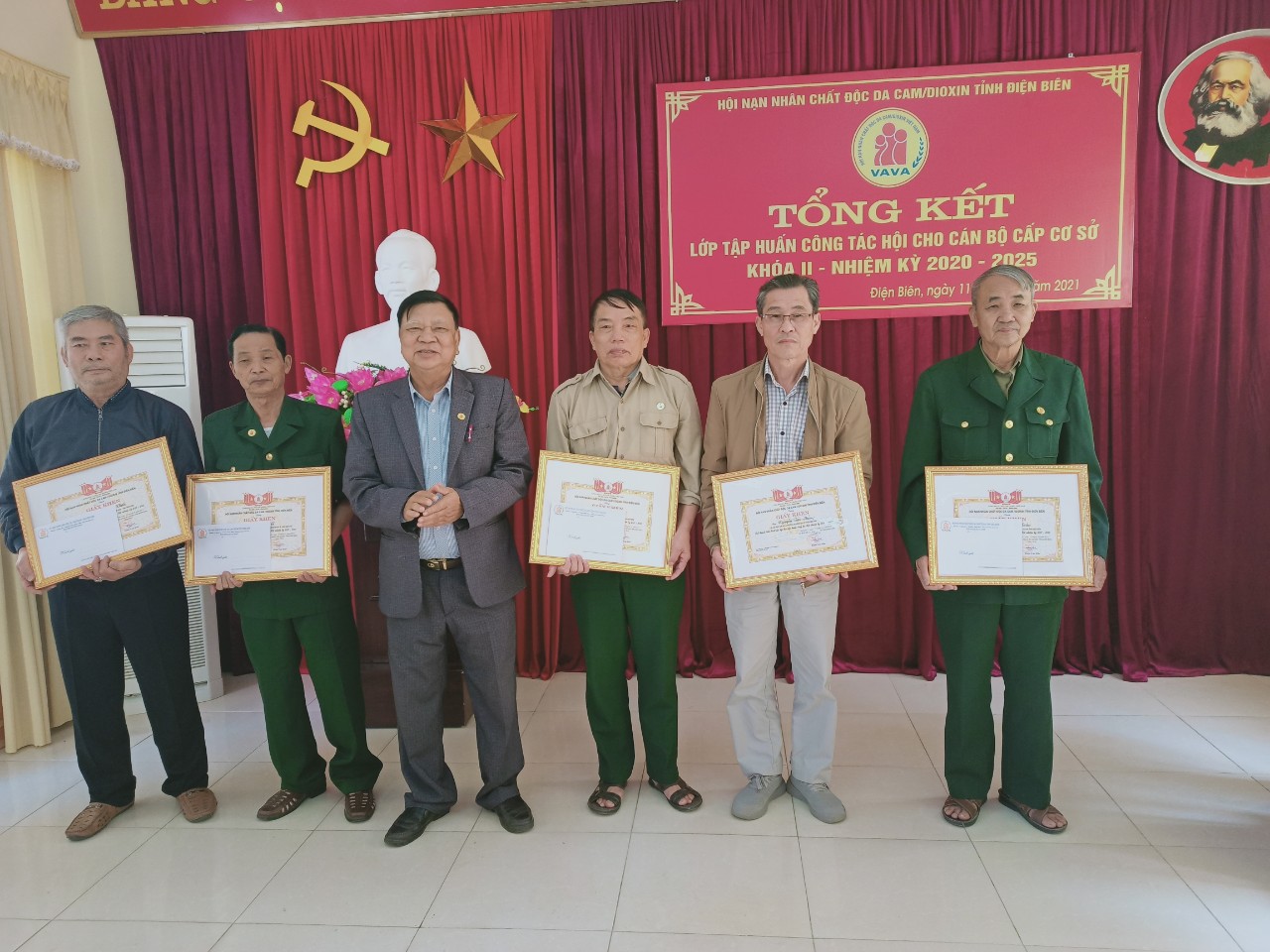 Thực hiện Nghị quyết Đại hội lần thứ II nhiệm kỳ 2021 – 2025, ngày 05 tháng 4 năm 2021 Ban Chấp hành Hội NNCĐDC/dioxin tỉnh Điện Biên đã khai mạc lớp tập huấn cho cán bộ cơ sở về nghiệp vụ công tác Hội. Về dự lớp tập huấn có 35 đồng chí cán bộ chủ trì của hội các xã, BCH Hội huyện, tỉnh. Thời gian tập huấn là 5 ngày, đã học tập, quán triệt 9 chuyên đề: Chỉ thị 43-CT/TW ngày 14/5/2015 của Ban Bí thư trung ương Đảng, các văn bản số 144/HD-TWH, chương trình hành động 141/CTHD/TWH; Công tác xây dựng hội; Chế độ chính sách của Nhà nước đối với nạn nhân chất độc da cam; Công tác tuyên truyền và công tác thi đua khen thưởng; Hoạt động đối ngoại nhân dân; Công tác tài chính kế toán; Công tác vận động, quản lý Quỹ nạn nhân chất độc da cam; Công tác kiểm tra giám sát và chuyên đề 9: Công tác hành chính, văn phòng Hội.