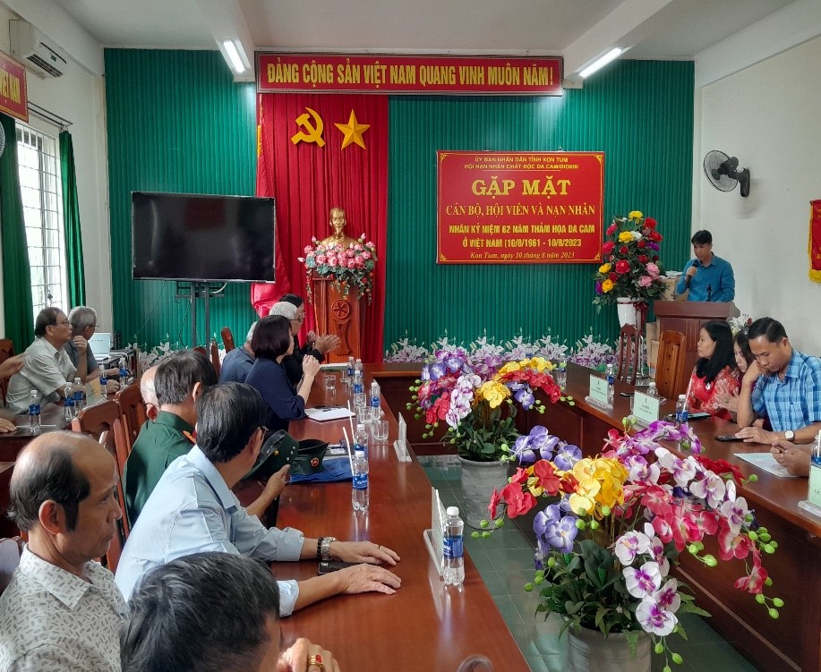 Tại buổi gặp mặt ông Nguyễn Văn Giỏi, Chủ tịch Hội NNCĐDC/dioxin tỉnh cho biết, Từ năm 1961 đến năm 1971, quân đội Mỹ đã phun rải chất độc hóa học ở nhiều tỉnh của miền Nam Việt Nam; riêng tỉnh Kon Tum, quân đội Mỹ đã phun rải khoảng 346 nghìn lít, trong đó có khoảng 34 nghìn lít chất độc da cam/dioxin, hơn 78 nghìn lít chất xanh, 132 nghìn lít chất trắng, hơn 25 nghìn lít chất khác, phun rải hơn 351 ha chiếm 5% trên tổng diện tích tự nhiên của tỉnh. Hơn 100.000 ha rừng tự nhiên bị phá hủy hoàn toàn tạo nên vùng đất “chết” các hệ sinh thái bị hủy diệt và nhiều người bị nhiễm CĐHH trực tiếp trong chiến tranh. Chất độc da cam đã làm cho 4,8 triệu người Việt Nam bị phơi nhiễm, hơn 3 triệu người là nạn nhân; riêng tỉnh Kon Tum có gần 8.000 người bị nhiễm chất độc hóa học, trong số đó có hơn 1.000 người đang được hưởng chế độ trợ cấp hằng tháng của Nhà nước. Phần lớn gia đình nạn nhân chất độc da cam có hoàn cảnh khó khăn, nhiều bệnh tật hiểm nghèo. Mặc dù đã có chế độ chính sách của Đảng và Nhà nước, sự quan tâm của các nhà hảo tâm và xã hội, nhưng vẫn không thể bù đắp hết nỗi đau còn mang trên người, nhiều người đã chết, nhiều người hàng ngày, hàng giờ đang sống trong bệnh tật dày vò do di chứng tàn khốc của chất độc da cam…họ rất cần sự quan tâm chia sẻ của toàn xã hội.