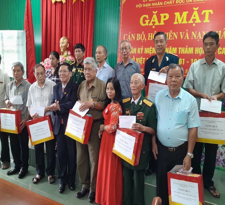 Nhân dịp này, Hội NNCĐDC/dioxin tỉnh đã trích Qũy NNCĐDC/dioxin với số tiền 168.600.000 đồng, thăm hỏi, tặng quà cho 825 NNCĐDC hiện đang hưởng chế độ trợ cấp hằng tháng, mỗi suất quà 200 ngàn đồng bằng tiền mặt và tặng 12 suất quà bằng hiện vật cho 12 NNCĐDC có hoàn cảnh khó khăn. Ngoài ra, Tỉnh hội còn phối hợp với Hội Chữ thập đỏ tỉnh tặng 39 suất quà từ nguồn vận động Tháng nhân đạo năm 2023 cho 39 hộ gia đình nạn nhân, mỗi suất quà 500 ngàn đồng tiền mặt, tổng số tiền là19,5 triệu đồng.