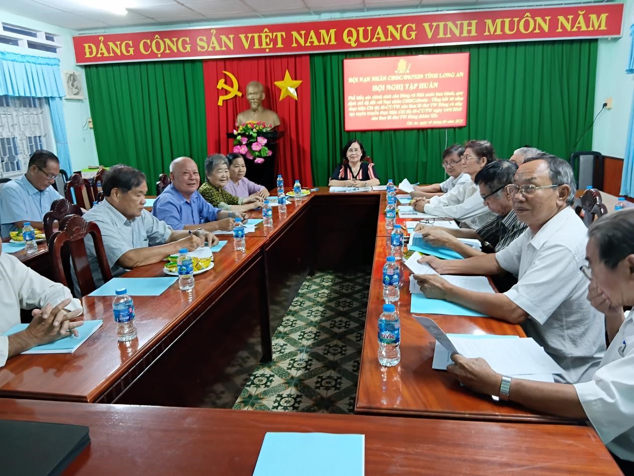 Thực hiện nhiệm vụ do Đảng và Nhà nước giao năm 2025, Thường trực Hội NNCĐDC/dioxin tỉnh Long An mở lớp tập huấn cho cán bộ Ban chấp hành Tỉnh hội, Chủ tịch và Chi hội trưởng Hội cơ sở, đây là đội ngũ cán bộ nòng cốt trong tổ chức thực hiện nhiệm vụ của hội và chăm lo cho NNCĐDC trên địa bàn thành phố Tân An.