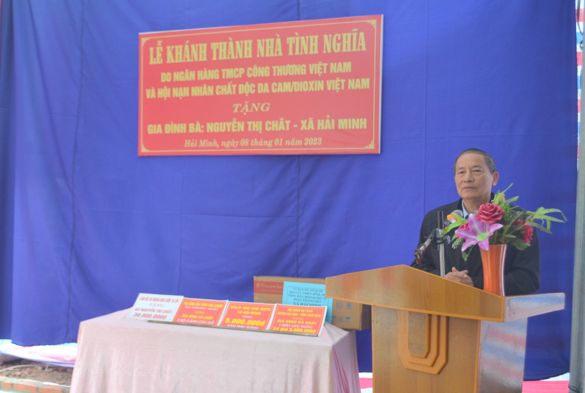 Phó Chủ tịch Trung ương Hội Đặng Nam Điền phát biểu đánh giá cao sự quan tâm nỗ lực của tổ chức hội các cấp trong tỉnh, cấp ủy chính quyền địa phương đã thực hiện đúng kế hoạch và tiến độ thi công sớm hoàn thành căn nhà tình nghĩa cho nạn nhân trước tết Nguyên đán. Đây là hành động thiết thực thực hiện có hiệu quả chính sách đối với người có công là NNCĐDC và mong rằng sẽ lan tỏa ra toàn xã hội, chung tay xoa dịu nỗi đau da cam, giúp họ vượt qua mọi khó khăn trong cuộc sống vươn lên hòa nhập cộng đồng góp phần an sinh xà hội.