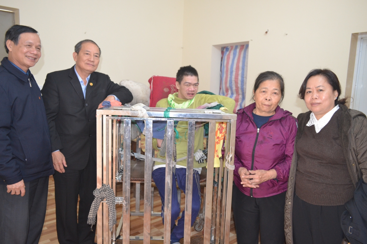 | Lãnh đạo TWH, Tỉnh Hội thăm cháu Phan Thanh Đang, NNCĐDC con bà Nguyễn Thị Chắt đang ở ngôi nhà mới vừa được khánh thành |