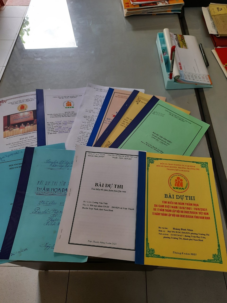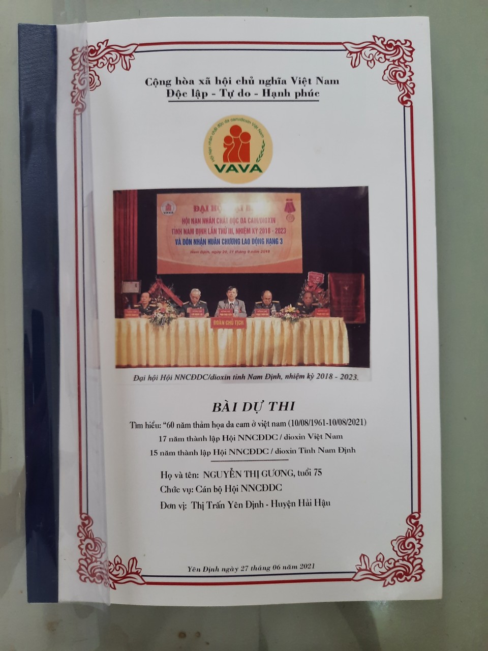 Nhiều bài dự thi được trình bầy công phu, hình thức đẹp, chữ viết tay nắn nót, có số liệu, hình ảnh minh họa sinh động. Đặc biệt có bài dự thi của bà Nguyễn Thị Gương, 75 tuổi là cán bộ Hội cơ sở thị trấn Yên Định huyện Hải Hậu. Bà đã sưu tầm hàng ngàn trang tư liệu từ các nguồn sách báo, Tạp chí Da cam Việt Nam nói về cuộc chiến tranh hóa học của Mỹ tại Việt Nam và các chỉ thị nghị quyết của Đảng, chế độ chính sách của Nhà nước về vấn đề khắc phục hậu quả chất độc hóa học do Mỹ sử dụng trong chiến tranh ở Việt Nam; những văn kiện của đại hội các cấp Hội; những hoạt động của Hội trong công tác chăm sóc giúp đỡ nạn nhân, nhiều hình ảnh phong phú trân thực. Bài dự thi của bà được viết tay rất nắn nót, có gần 200 bức ảnh minh họa, dày 152 trang, trình bày đẹp, đóng bìa cứng.