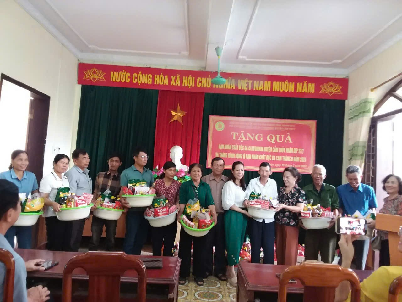 Thường trực Tỉnh hội cùng nhà hảo tâm thăm tặng quà cho NNCĐDC tại huyện Cẩm Thủy