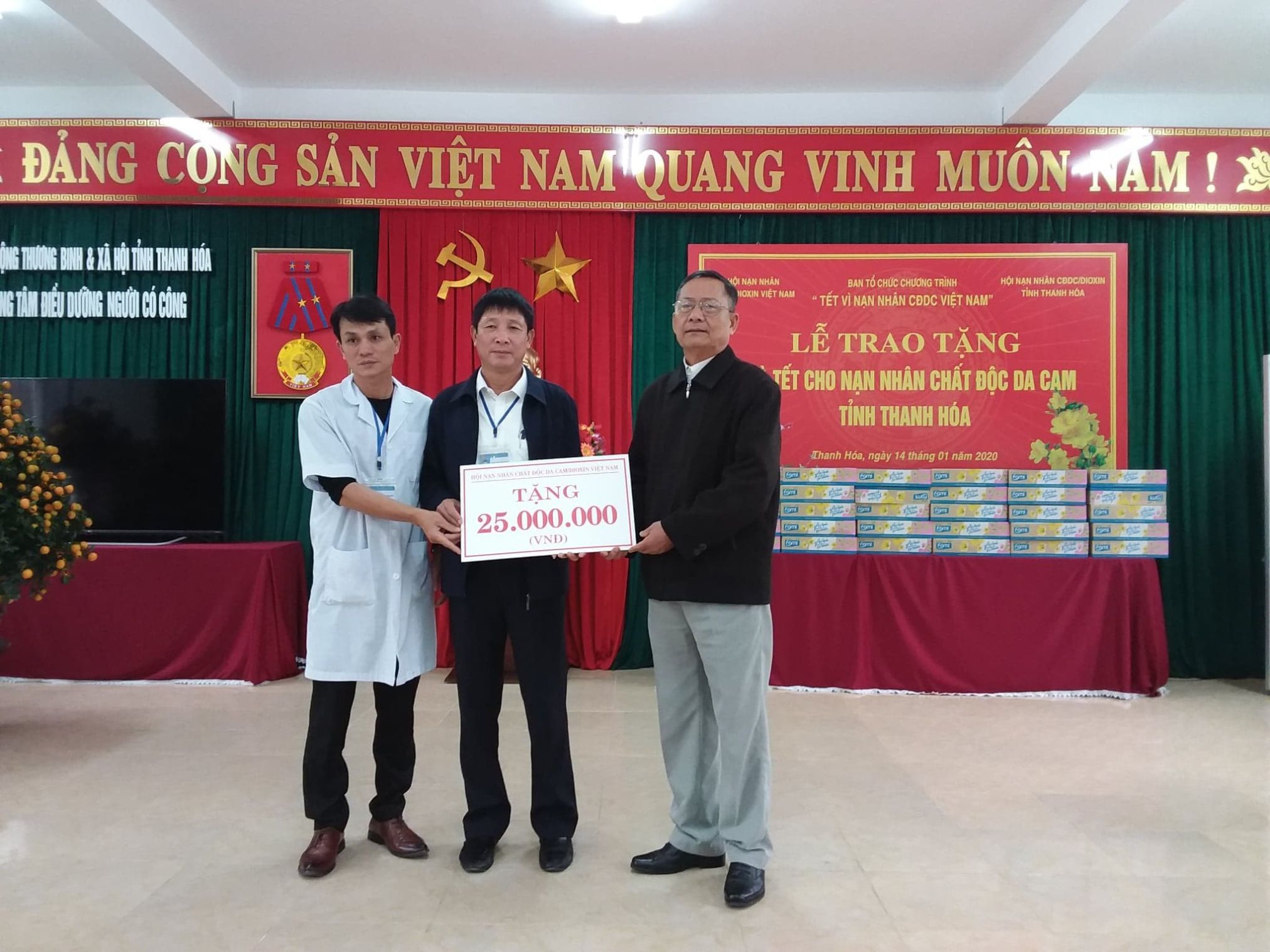 Nhân dịp Tết Canh Tý - 2020, được sự ủy quyền của Trung ương Hội NNCĐDC/dioxin Việt Nam, ngày 14/01/2020 Thường trực Hội NNCĐDC/dioxin tỉnh Thanh Hóa đã trao số tiền 25.000.000 đ (hai mươi lăm triệu đồng) và 50 thùng sữa đậu nành Fami của Nhà máy sữa đậu nành Việt Nam Vinasoy do Ban Tổ chức chương trình “Tết vì nạn nhân chất độc da cam Việt Nam” tài trợ tới 92 NNCĐDC có hoàn cảnh đặc biệt khó khăn, đang được nuôi dưỡng tại Trung tâm điều dưỡng người có công tỉnh Thanh Hóa./.