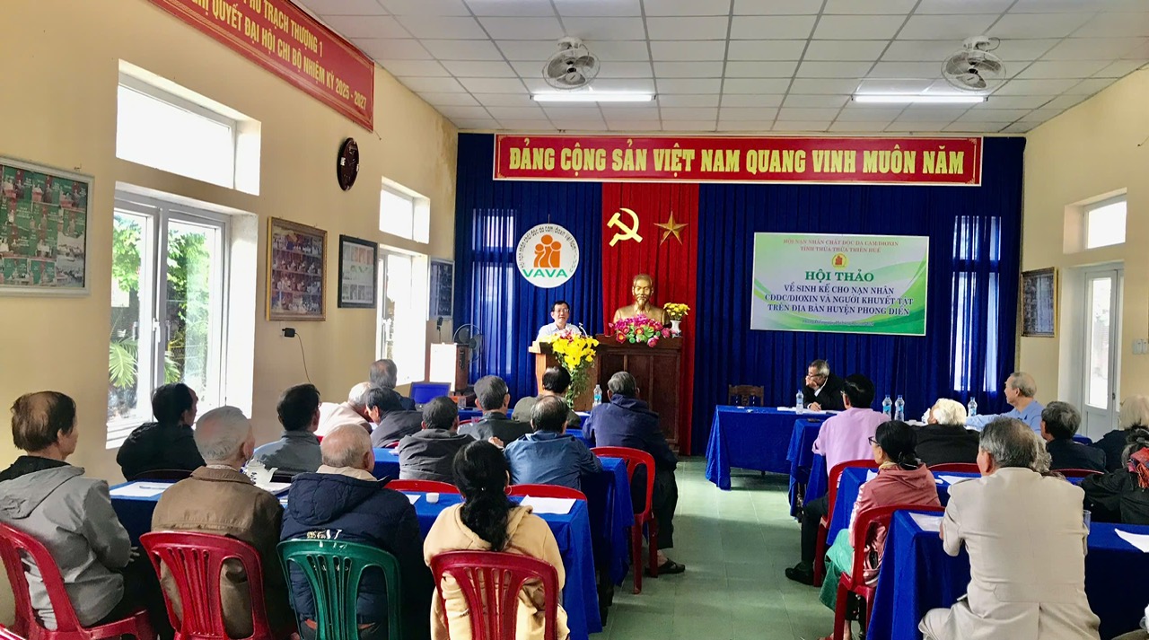 Thành phần dự hội thảo là lãnh đạo Hội cơ sở, hội viên là NNCĐDC và một số NKT sinh hoạt ở các tổ chức Hội tại huyện Phong Điền; tổng số dự hội thảo là 45 người.