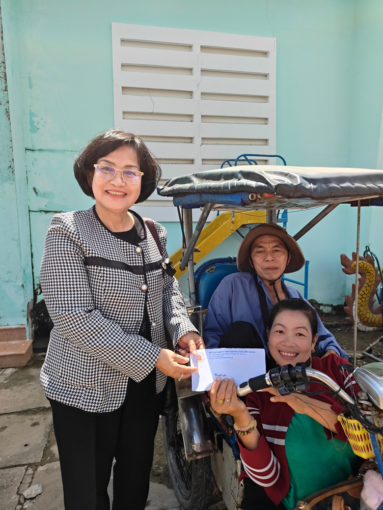 Bà Trần Thị Quý Mão, Chủ tịch Tỉnh hội tặng quà NNCĐDC thành phố Gò Công