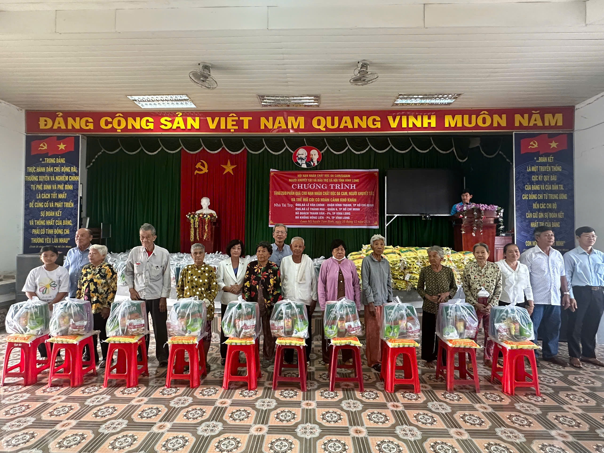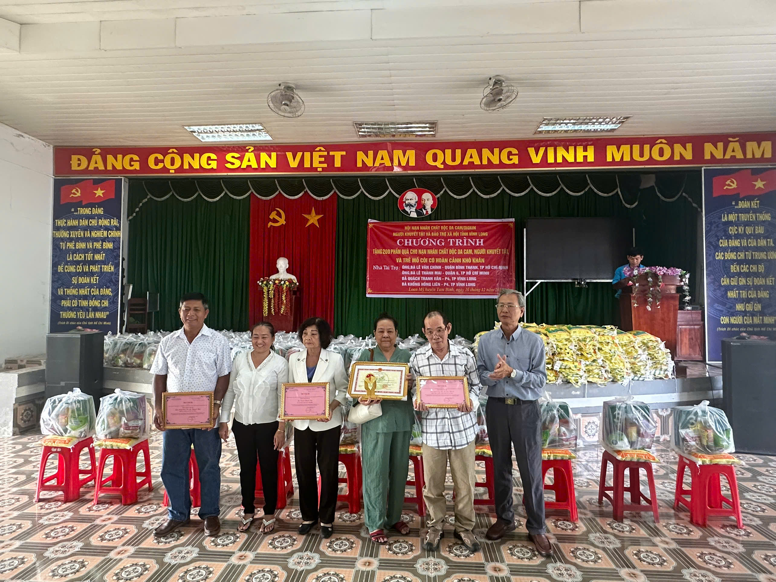 Sáng 10/12/2024, tại UBND xã Loan Mỹ, huyện Tam Bình, tỉnh Vĩnh Long, Hội Nạn nhân chất độc da cam/dioxin tỉnh đã phối hợp với Huyện hội Tam Bình và Hội xã Loan Mỹ tổ chức trao tặng 200 phần quà cho nạn nhân chất độc da cam, người khuyết tật và trẻ mồ côi có hoàn cảnh khó khăn trên địa bàn xã Loan Mỹ; mỗi phần quà trị giá 400 ngàn đồng gồm: 5 kg gạo, nhu yếu phẩm và 100 ngàn đồng tiền mặt; Tổng giá trị là 80 triệu đồng.