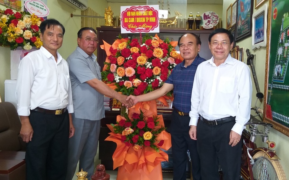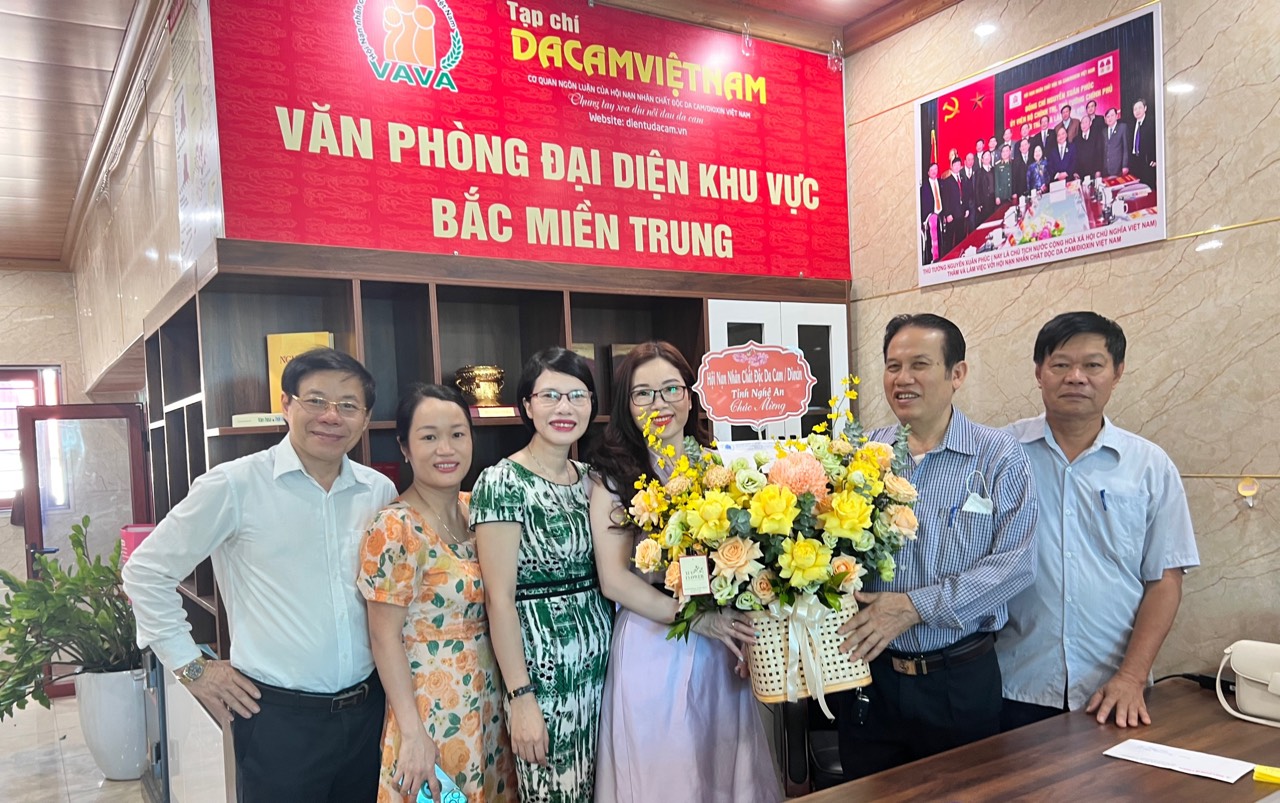 Ông Hoàng Đăng Hòe Quyền chủ tịch Hội NNCĐDC/dioxin tỉnh Nghệ An, dẫn đầu đoàn công tác đã đến thăm chúc mừng Văn phòng đại diện Tạp chí Da cam Việt Nam khu vực Bắc miền Trung tại 93 Minh Khai, TP Vinh; cảm ơn sự quan tâm của Trung ương Hội NNCĐDC/dioxin cũng như Tạp chí Da cam Việt Nam thời gian qua đã thường xuyên chỉ đạo, hỗ trợ, giúp đỡ tỉnh Hội tỉnh Nghệ An hoàn thành xuất sắc nhiệm vụ; bên cạnh đó Tạp chí Da cam, Cơ quan đại diện Bắc miền Trung đã có nhiều đóng góp trong tuyên truyền, lan tỏa những nghĩa cử cao đẹp trong đời sống xã hội, động viên nạn nhân vượt qua nỗi đau, vươn lên hòa nhập cộng đồng.