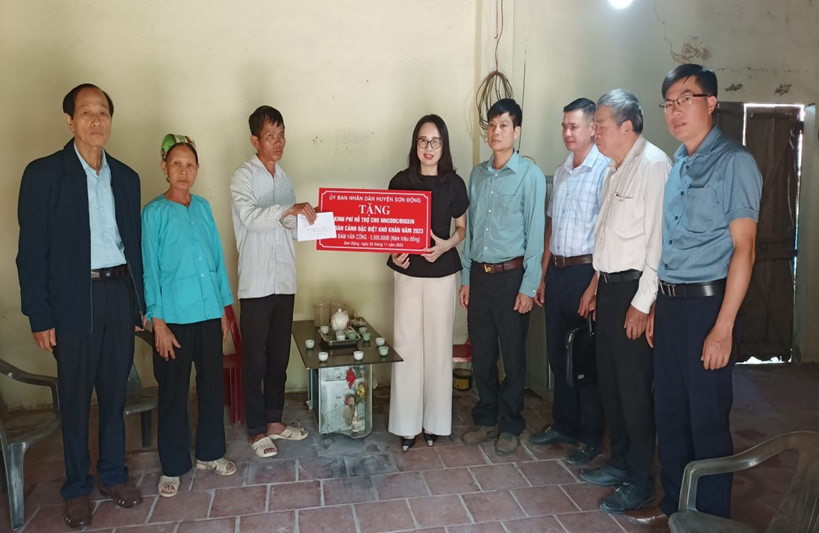 Ngày 02/11/2023, bà Tống Thị Hương Giang, Ủy viên BCH Huyện ủy, Phó Chủ tịch UBND huyện Sơn Động (đứng giữa) thăm và tặng 5.000.000 đồng cho gia đình nạn nhân Bế Thị Vui, tại xã Vân Sơn, huyện Sơn Động.