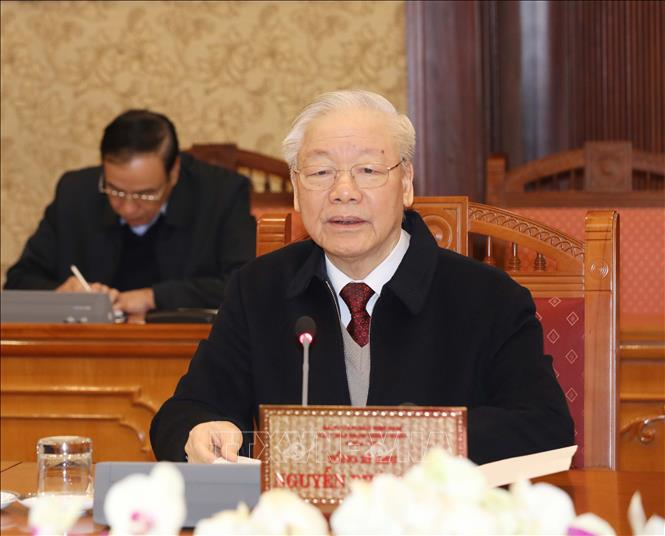 | Tổng Bí thư Nguyễn Phú Trọng chủ trì cuộc họp của Ban Bí thư đánh giá công tác tổ chức Tết Quý Mão năm 2023. |