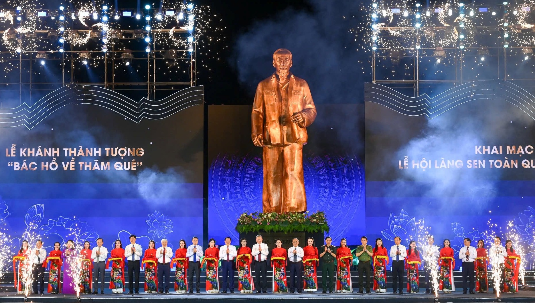Tổng Bí thư Tô Lâm và các đồng chí lãnh đạo, nguyên lãnh đạo Đảng, Nhà nước, lãnh đạo tỉnh Nghệ An dự lễ Khai mạc Lễ hội Làng Sen và Khánh thành Tượng "Bác Hồ về thăm quê"