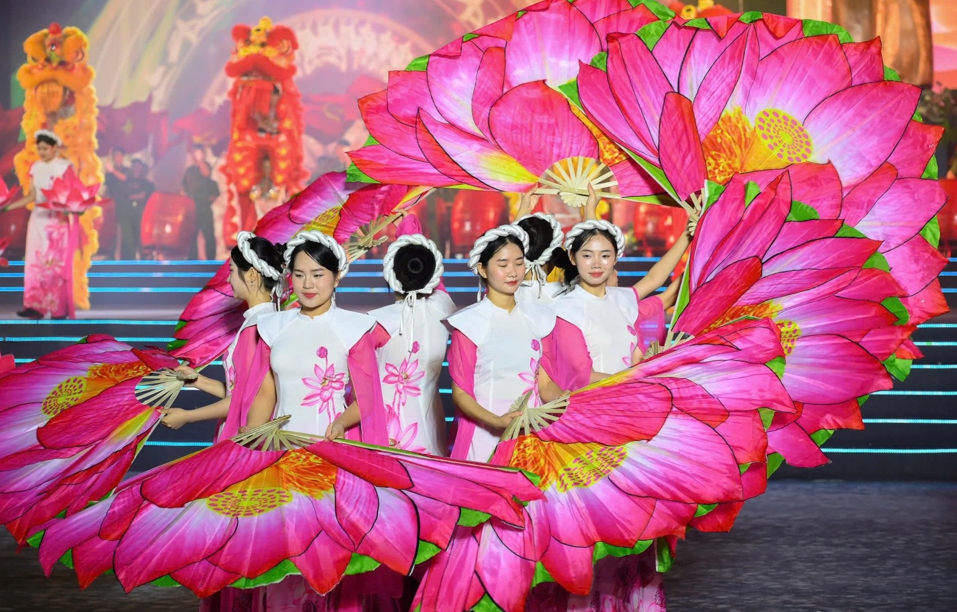 Chương I: “Tiếng gọi non sông mở” màn bằng tiết mục “Ru con giữa mùa sen nở” - khúc hát quê hương mộc mạc, đằm thắm như vang lên từ sâu thẳm tâm hồn xứ Nghệ, giữa mùa sen nở rộ.
