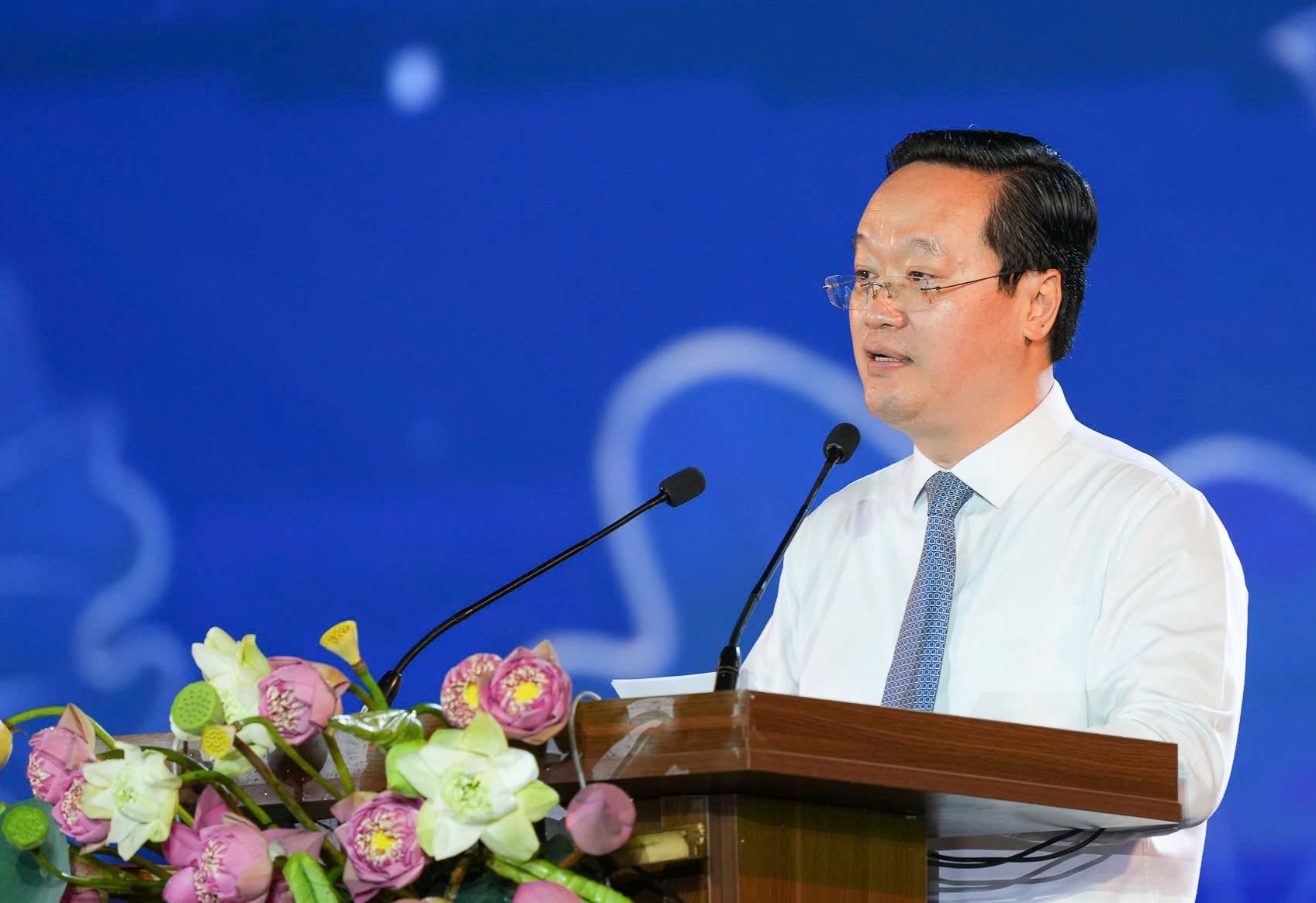 Phát biểu tại khai mạc Lễ hội Làng Sen 2025, đồng chí Nguyễn Đức Trung - Bí thư Tỉnh ủy Nghệ An, nhiệt liệt chào mừng và trân trọng gửi tới đồng chí Tổng Bí thư Tô Lâm; các đồng chí lãnh đạo, nguyên lãnh đạo Đảng, Nhà nước; lãnh đạo các ban, bộ, ngành, cơ quan Trung ương, Quân khu 4; lãnh đạo các địa phương, các quý đại biểu cùng toàn thể Nhân dân lời chúc sức khỏe và lời chúc mừng tốt đẹp nhất.