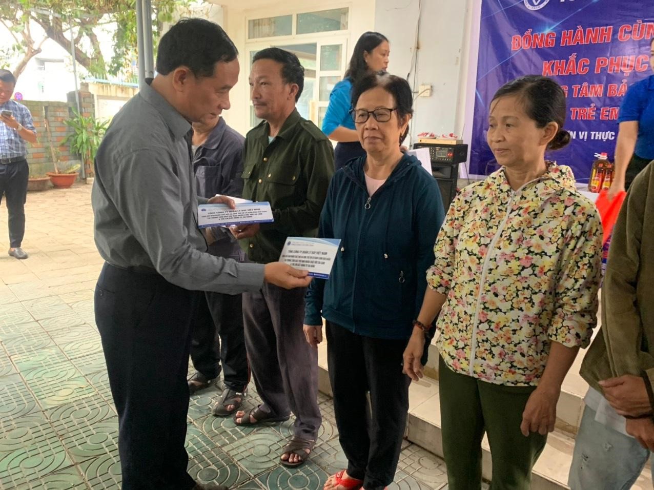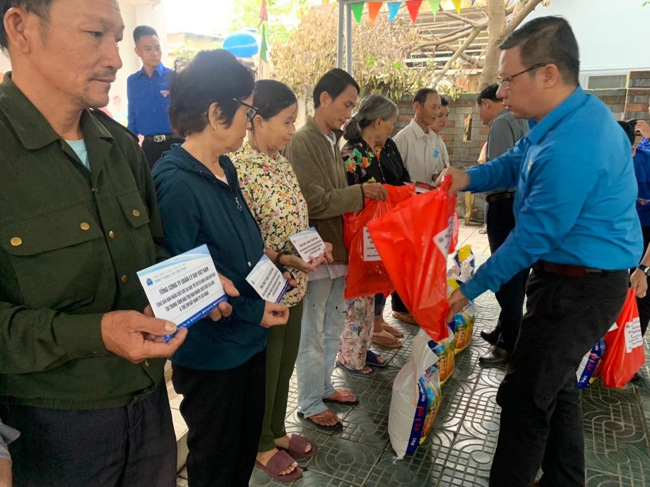 Ông Trần Nguyễn Bảo Anh, Chủ tịch Công đoàn Tổng công ty Quản lý bay Miền Trung trao quà cho các gia đình NNCĐDC