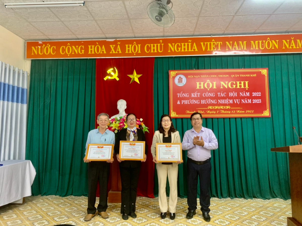 Ngày 07/12/2022 Hội Nạn nhân chất độc da cam/dioxin quận Thanh Khê, thành phố Đà Nẵng, tổ chức Hội nghị tổng kết công tác Hội năm 2022 và triển khai phương hướng, nhiệm vụ năm 2023; đồng thời khen thưởng cho các tập thể và cá nhân đã có thành tích trong phong trào vì nạn nhân chất độc da cam năm 2022. Năm 2022, Quận hội Thanh Khê đã nổ lực vận động kêu gọi bằng nhiều hình thức để giúp đỡ nạn nhân chất độc da cam trên địa bàn quận. Quận hội đã củng cố lại BCH, phát triển mới 4 hội viên; công tác tuyên truyền được đẩy mạnh, các tin bài được đăng tải trên Báo Đà Nẵng, Tạp chí Da cam Việt Nam. Công tác vận động quỹ đạt hiệu quả tích cực; toàn quận đã vận động được gần 2.500 suất quà, hỗ trợ 02 chiếc xe lăn, hỗ trợ 11 suất tiền trợ dưỡng thường xuyên; với tổng số tiền 982 triệu đồng. Năm 2023, Hội Nạn nhân chất độc da cam/dioxin quận Thanh Khê đề ra 07 nhiệm vụ trọng tâm, trong đó tập trung vận động kêu gọi tặng quà Tết Quý Mão 2023 cho nạn nhân da cam và chuẩn bị các nội dung cho Đại hội nhiệm kỳ 2023-2028.