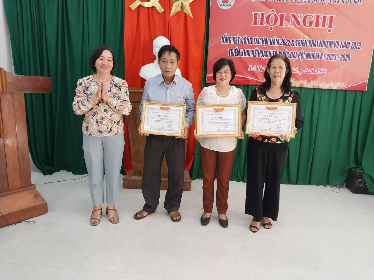 Ngày 01/12/2022 Quận hội Ngũ Hành Sơn, Đà Nẵng tổ chức Hội nghị tổng kết phong trào hoạt động Hội năm 2022 và đề ra phương hướng nhiệm vụ năm 2023. Năm qua, các cấp Hội quận Ngũ Hành Sơn đã vận động, kêu gọi các tổ chức, cá nhân trên địa bàn đã chung tay giúp đỡ nạn nhân da cam được 940 suất quà và 25 suất trợ dưỡng thường xuyên, trị giá 466 triệu đồng. Ngoài ra, Chi hội các phường còn kêu gọi vận động nhiều nguồn lực để giúp đỡ cho nạn nhân da cam tại địa phương. Tại Hội nghị Tổng kết năm 2022 của 2 quận Thanh Khê và Ngũ Hành Sơn, Hội Nạn nhân chất độc da cam/dioxin TP. Đà Nẵng đã tặng Giấy khen cho các tập thể và cá nhân đã hoàn thành tốt nhiệm vụ trong phong trào thi đua “Vì nạn nhân chất độc da cam” năm 2022
