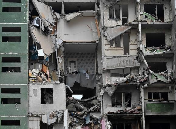 Tòa nhà ở Chernihiv (còn gọi là Chernigov) ở Ukraine bị phá hủy. Ảnh chụp ngày 5-4