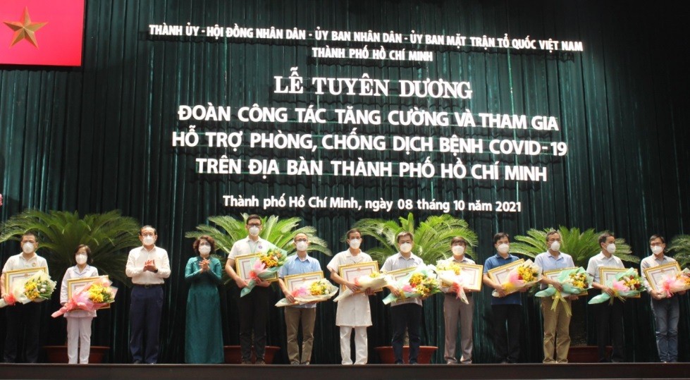 Ngày 8/10, UBND TP Hồ Chí Minh đã trao tặng Bằng khen cho 55 tập thể và tặng Huy hiệu TP Hồ Chí Minh cho 115 cá nhân có thành tích xuất sắc khi tham gia công tác phòng, chống dịch.