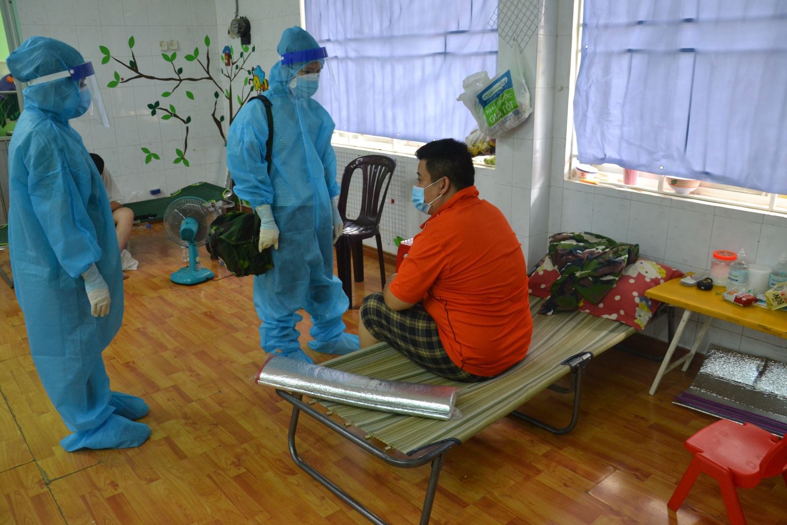 Các bác sĩ dân quân đi thăm khám cho các F0 đang điều trị cách ly tại địa bàn Quận 5.
