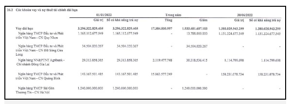 Tuy nhiên, bù vào chỗ trống của một số ngân hàng thì FLC đã có thêm chủ nợ mới là ông Lê Thái Sâm – vay ngắn hạn với số dư cuối quý 2/2022 là 621 tỷ đồng và CTCP Tập đoàn Homeliday với số dư cuối kỳ hơn 185 tỷ đồng.