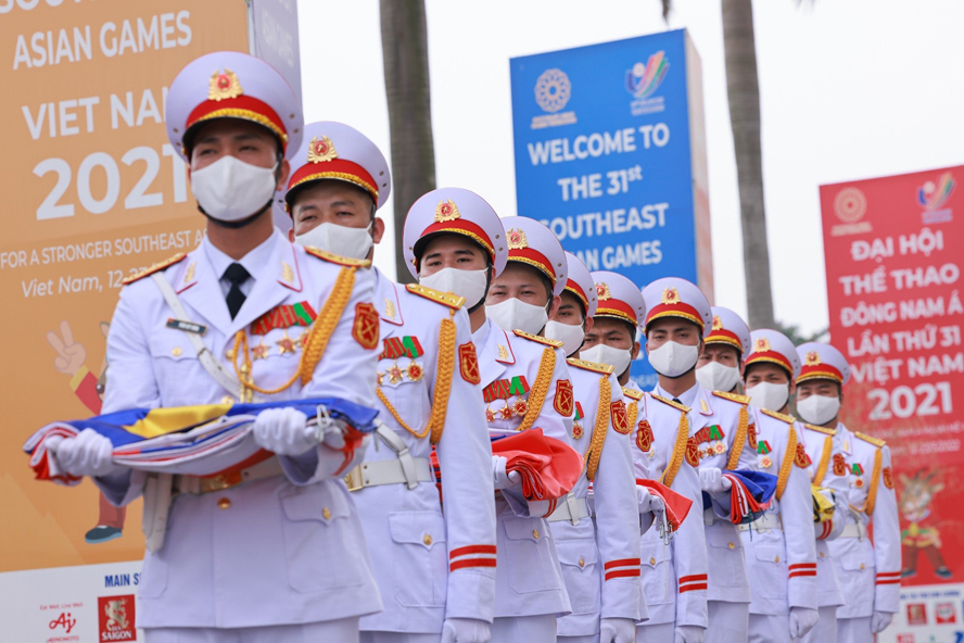 Phát biểu tại lễ thượng cờ, Thứ trưởng Bộ Văn hóa - Thể thao và Du lịch Hoàng Đạo Cương thay mặt Ban tổ chức nhiệt liệt chào đón hơn 8.000 quan chức, huấn luyện viên, vận động viên tham dự SEA Games 31 do Việt Nam đăng cai.