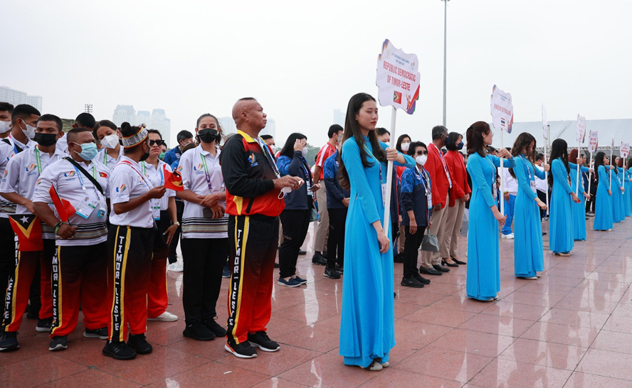 Đại diện 11 quốc gia tham dự SEA Games 31 gồm Thái Lan, Indonesia, Malaysia, Singapore, Lào, Campuchia, Myanmar, Timor Leste, Philippines, Brunei cùng chủ nhà Việt Nam có mặt đông đủ tham dự lễ thượng cờ.