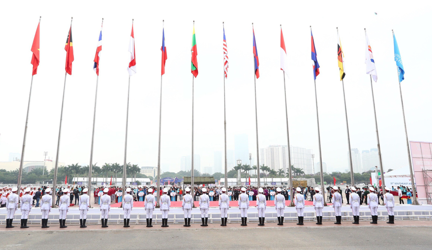 Quốc kỳ các nước lần lượt được kéo lên trong không khí long trọng, trang nghiêm tại Khu liên hợp thể thao Mỹ Đình, báo hiệu một kỳ SEA Games “Vì một Đông Nam Á mạnh mẽ hơn” như thông điệp của chủ nhà Việt Nam đưa ra.