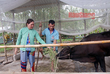 Vợ chồng ông Nguyễn Văn Khởi, ở ấp Mỹ Chánh, xã Hiệp Hưng, huyện Phụng Hiệp, hy vọng cuộc sống sẽ tốt hơn khi mô hình chăn nuôi bò đem lại hiệu quả.