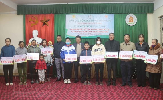 32 suất quà, mỗi suất trị giá 5 triệu đồng do Câu lạc bộ Golf Bông Lúa Vàng tại Thành phố Hồ Chí Minh tài trợ đã được trao cho 32 NNCĐDC, người khuyết tật, trẻ em có hoàn cảnh đặc biệt khó khăn.