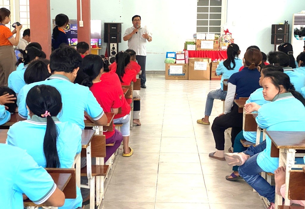Tại cơ sở 3 của Trung tâm, các thầy cô và học viên đã cùng giao lưu các tiết mục văn nghệ, các trò chơi nhỏ. Đoàn đã tặng 35 suất quà và nhiều nhu yếu phẩm khác cho Trung tâm, mong muốn giúp đỡ thêm nguồn lực phục vụ việc nuôi dưỡng, chăm sóc cho các em nạn nhân ngày càng tốt hơn.