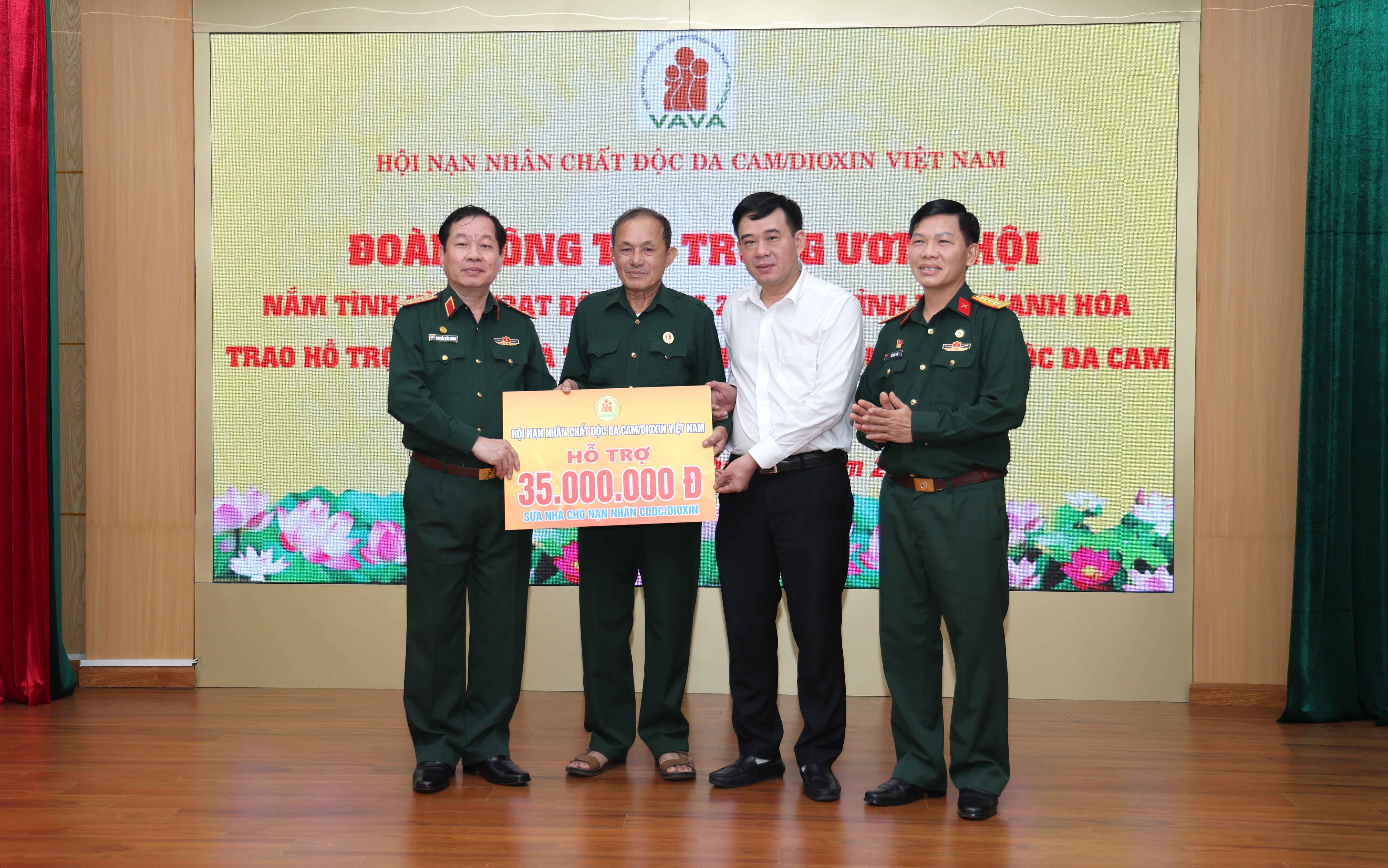 Tại tỉnh Thanh Hóa, tiếp và làm việc với đoàn có lãnh đạo Ban Tuyên giáo và Dân vận Tỉnh ủy, MTTQ tỉnh, Sở Nội vụ và Thường trực Tỉnh hội. Thực hiện chủ trương của Đảng, Nhà nước về việc sắp xếp tổ chức, tinh gọn bộ máy, thực hiện mô hình chính quyền địa phương 2 cấp và ý kiến chỉ đạo của UBND tỉnh, Hội NNCĐDC/dioxin tỉnh Thanh Hóa đã khẩn trương khảo sát, nắm tình hình, đồng thời chỉ đạo Hội cơ sở cung cấp thông tin để tổng hợp báo cáo bằng văn bản đến cấp có thẩm quyền về cơ cấu tổ chức, bộ máy, biên chế, thực trạng, tình hình và kết quả hoạt động của Hội; góp ý kiến vào đề án sắp xếp các hội quần chúng do Đảng, Nhà nước giao nhiệm vụ. Do chủ động nắm bắt tình hình và thực hiện tốt công tác chuẩn bị nên hoạt động công tác Hội (3 cấp trước ngày 01/7/2025 và 2 cấp từ ngày 01/7/2025 đến nay) vẫn diễn ra bình thường. Sau khi sáp nhập cấp xã, hiện toàn tỉnh Thanh Hóa có 166 xã, phường, trong đó có 128 xã, phường đủ điều kiện thành lập tổ chức Hội; đến nay đã có 43 xã, phường thành lập tổ chức Hội, các đơn vị còn lại đang tiến hành hoàn thiện thủ tục thành lập Hội theo hướng dẫn của cấp trên.