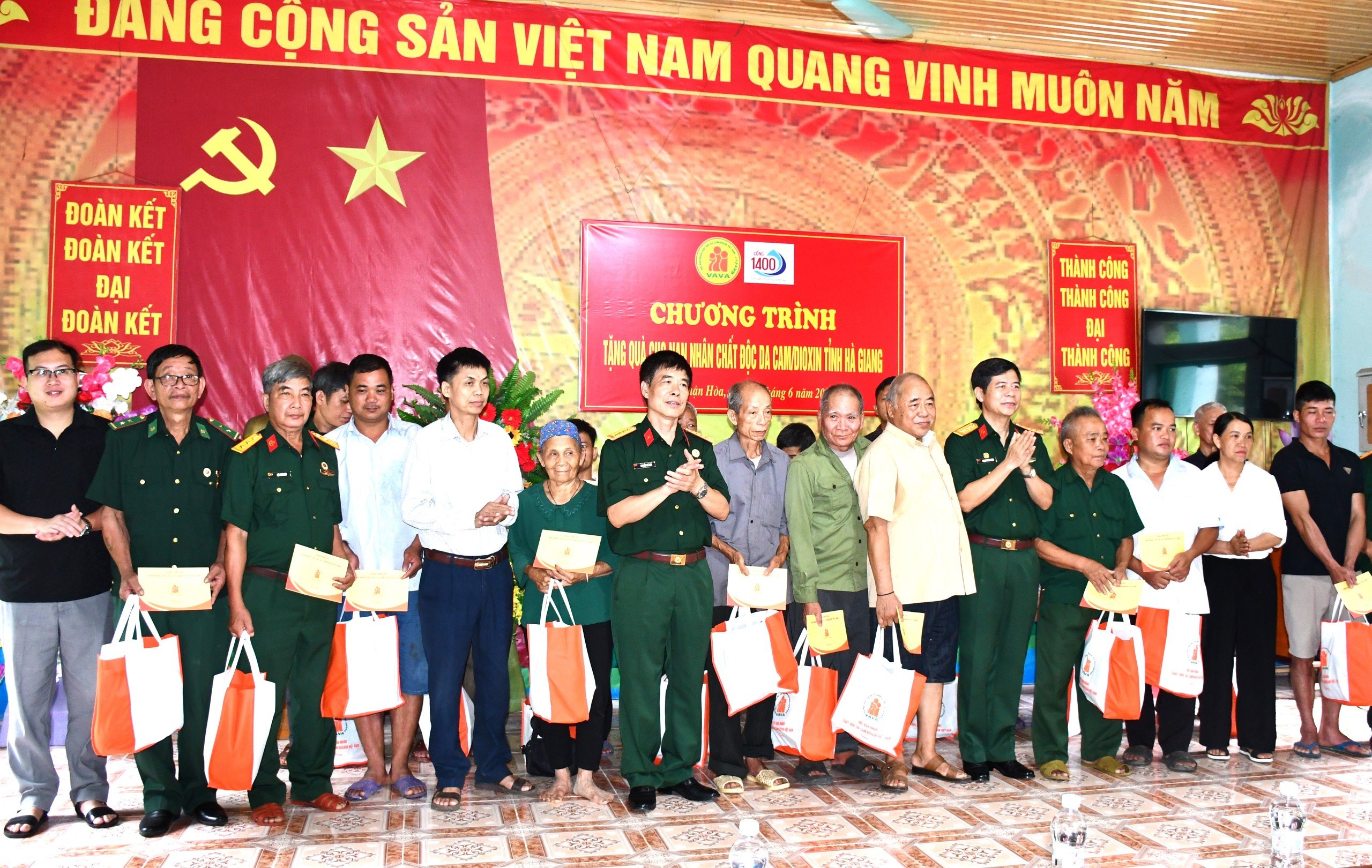 Dự buổi trao quà tại UBND xã Thượng Sơn, về phía địa phương có: ông Nguyễn Thế Đàm, Chủ tịch Hội NNCĐDC/dioxin tỉnh Hà Giang; bà Đặng Thị Phượng, Phó Chủ tịch thường trực UBND huyện Vị Xuyên; ông Nguyễn Văn Tấn, Chủ tịch Hội NNCĐDC/dioxin huyện Vị Xuyên; cùng cán bộ thường trực UBND xã Thượng Sơn và 10 gia đình NNCĐDC, mỗi suất quà có giá trị là 1,2 triệu đồng gồm: 1 triệu đồng tiền mặt và quà tương đương 200 nghìn đồng; hỗ trợ 50 triệu đồng làm nhà cho 1 gia đình NNCĐDC có hoàn cảnh đặc biệt khó khăn.