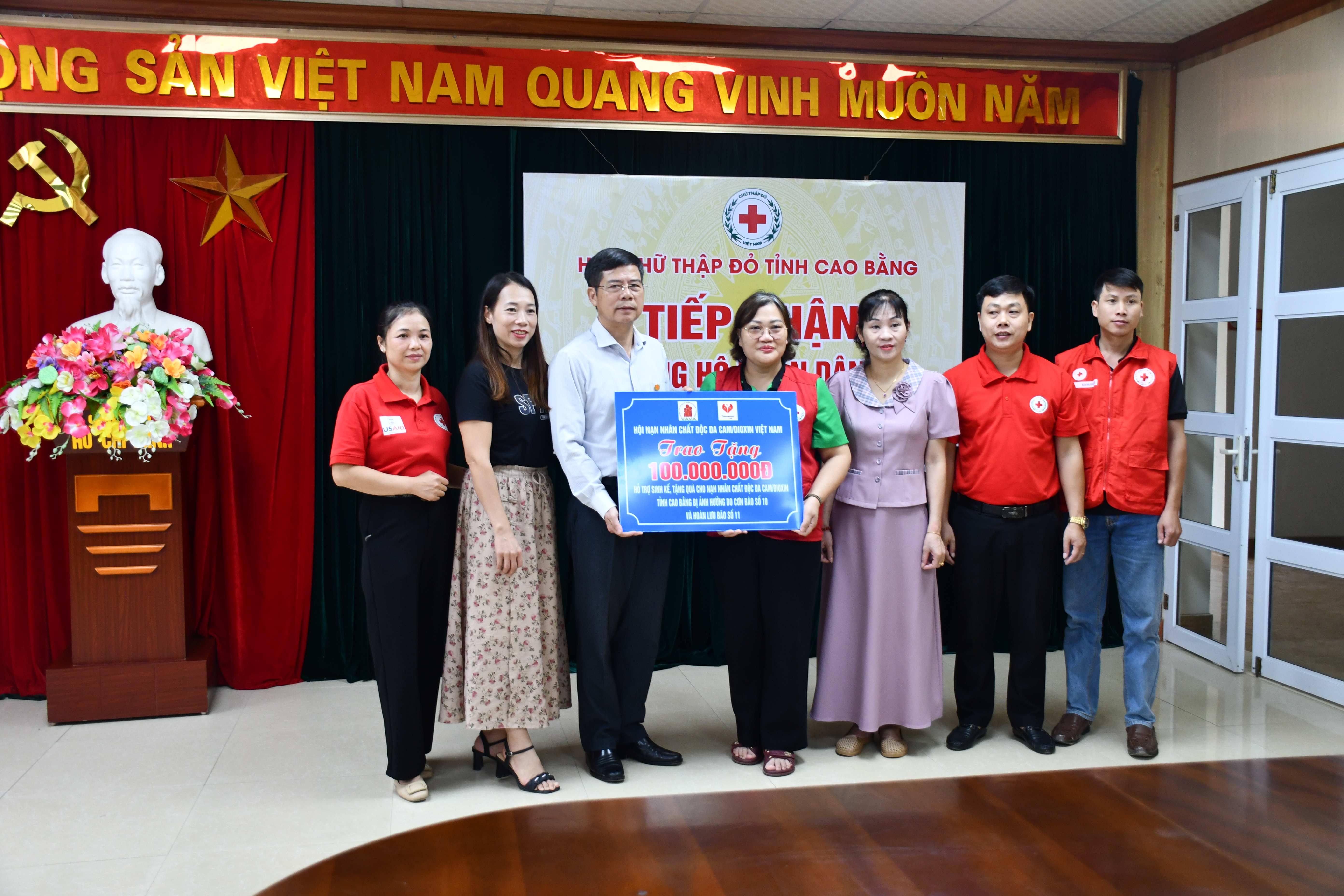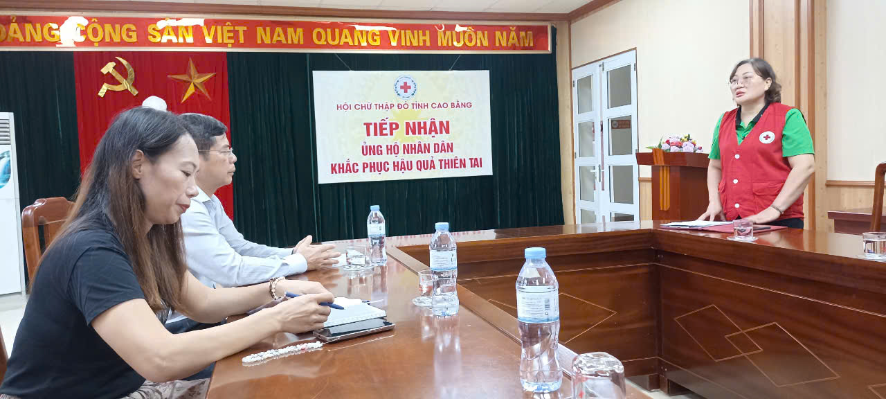 Sáng 17/10/2025, tại hội trường trụ sở Hội Chữ thập đỏ tỉnh Cao Bằng, Đoàn của Trung ương Hội đã tổ chức trao 100 triệu đồng hỗ trợ cho NNCĐĐC tỉnh Cao Bằng. Dự buổi trao hỗ trợ về phía địa phương gồm có: bà Đoàn Thị Uyên, Phó trưởng Ban Công tác xã hội - Uỷ ban MTTQ tỉnh; bà Nông Thị Anh, Phó Chủ tịch Hội Chữ thập đỏ tỉnh (hiện đang phụ trách Hội); cùng dự còn có một số cán bộ chuyên môn phụ trách từng mảng nhiệm vụ thuộc Văn phòng Tỉnh hội.