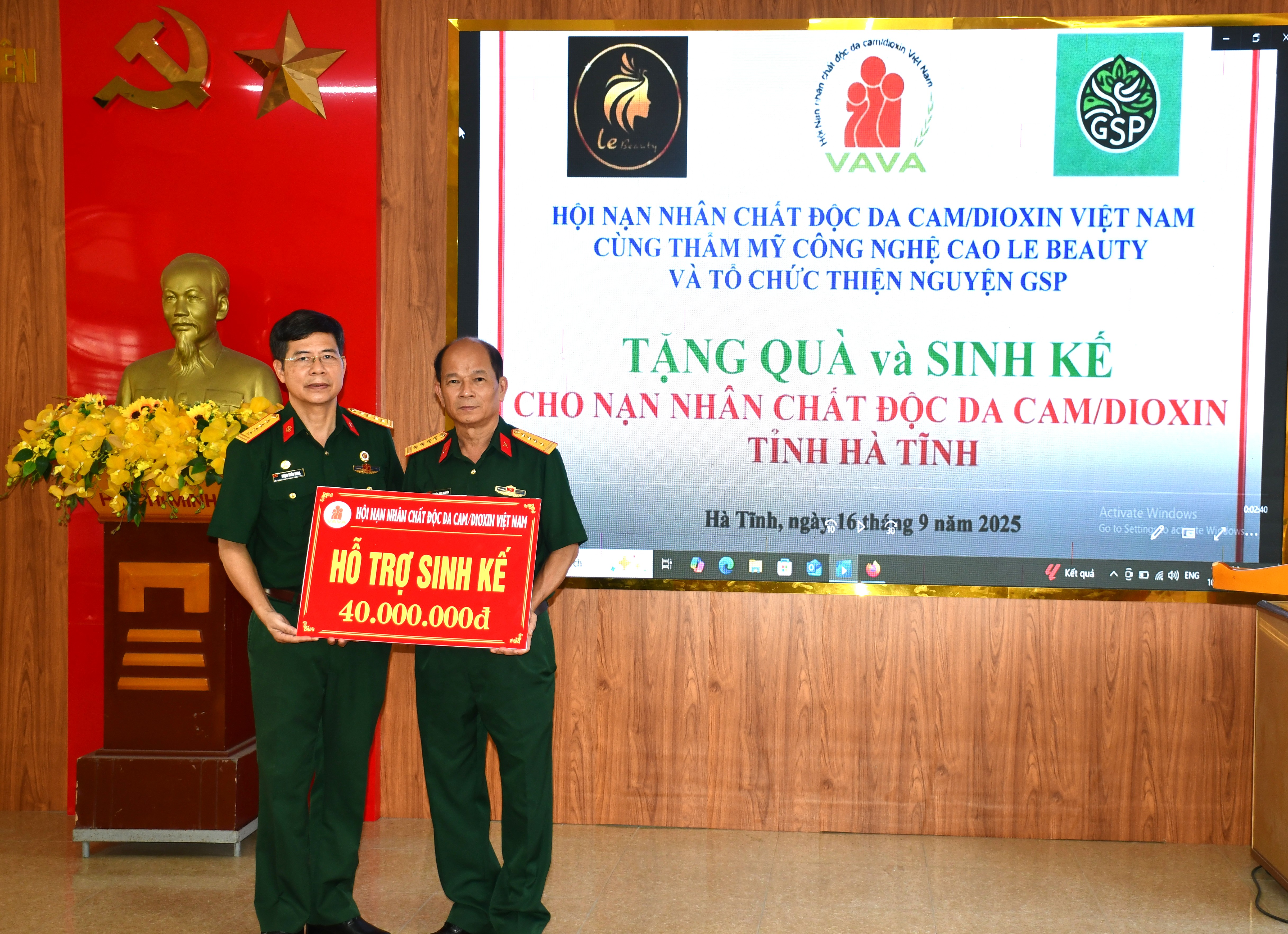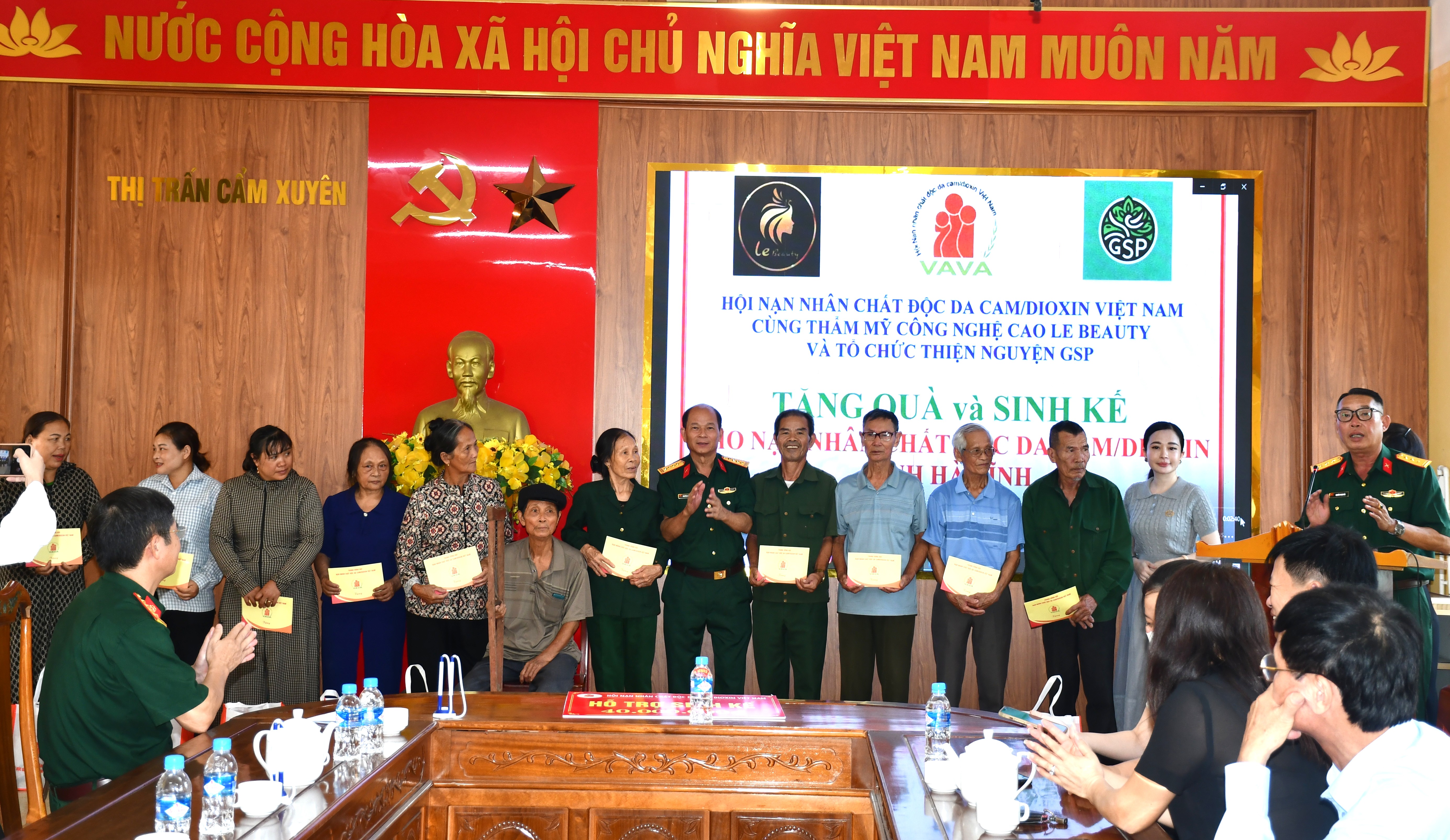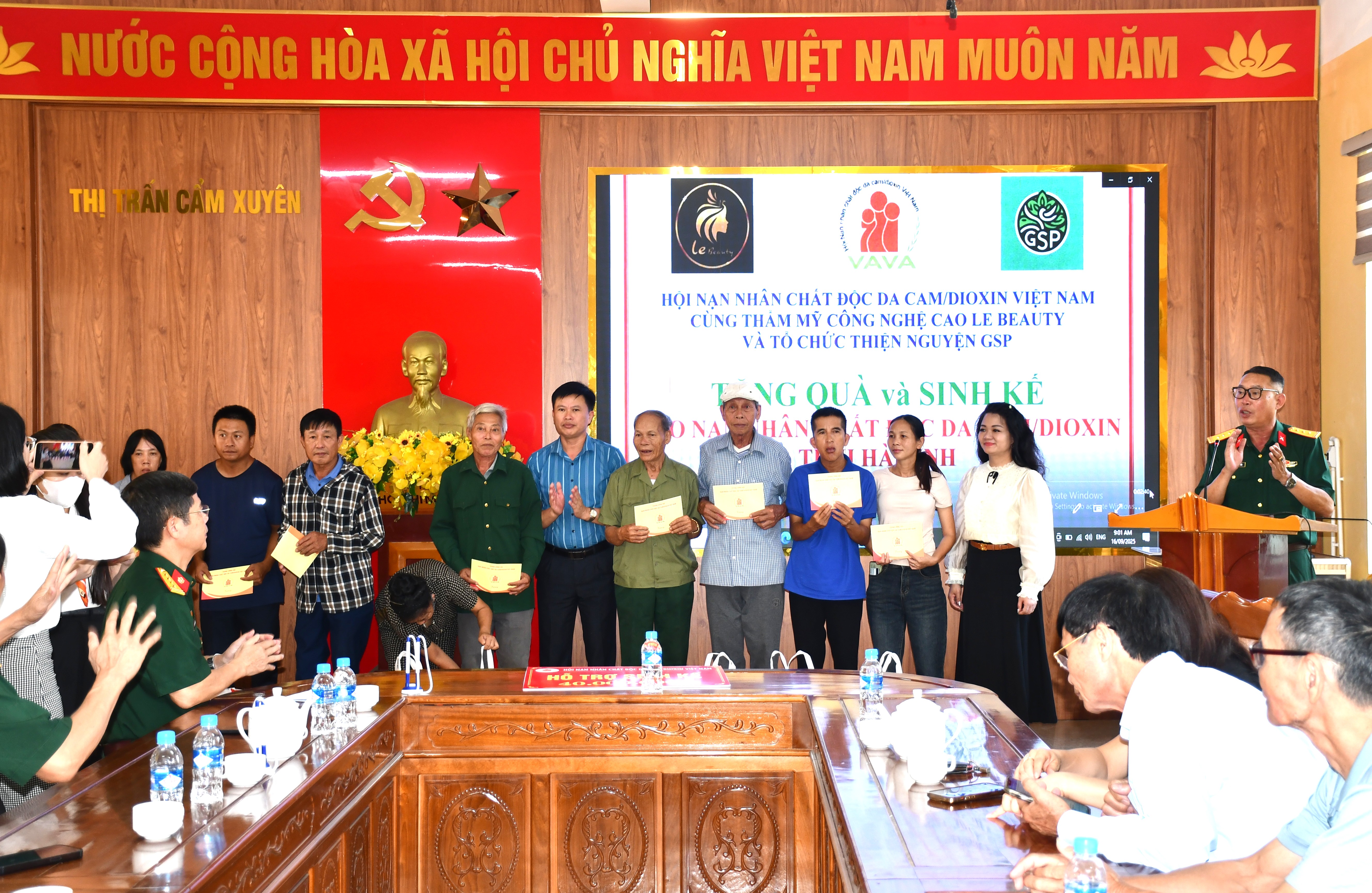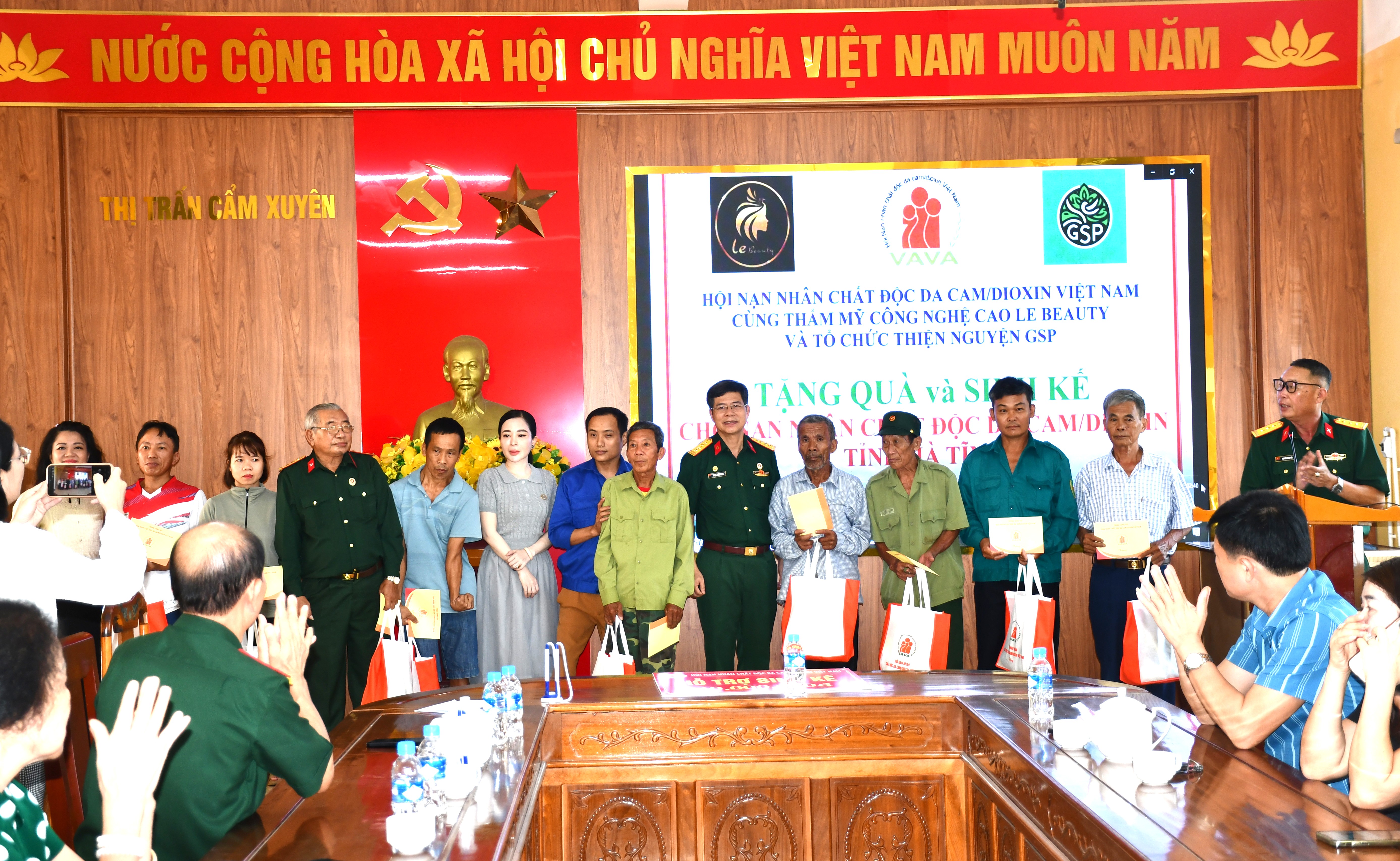 Thẩm mỹ công nghệ cao LE BEAUTY và tổ chức Từ thiện GSP đã trao tặng 50 suất quà, mỗi suất trị giá 1.200.000 đồng cho NNCĐDC, Đại tá Phạm Xuân Hưng cũng đã trao 40 triệu đồng, trích từ Quỹ NNCĐDC/dioxin Việt Nam cho Hội NNCĐDC/dioxin tỉnh Hà Tĩnh để hỗ trợ sinh kế cho NNCĐDC. việc trao tặng quà này là sự thể hiện sự quan tâm của Trung ương Hội và nghĩa cử cao đẹp, tấm lòng nhân ái của Thẩm mỹ công nghệ cao LE BEAUTY và tổ chức Từ thiện GSP góp phần động viên nạn nhân vượt qua khó khăn, vươn lên trong cuộc sống.
