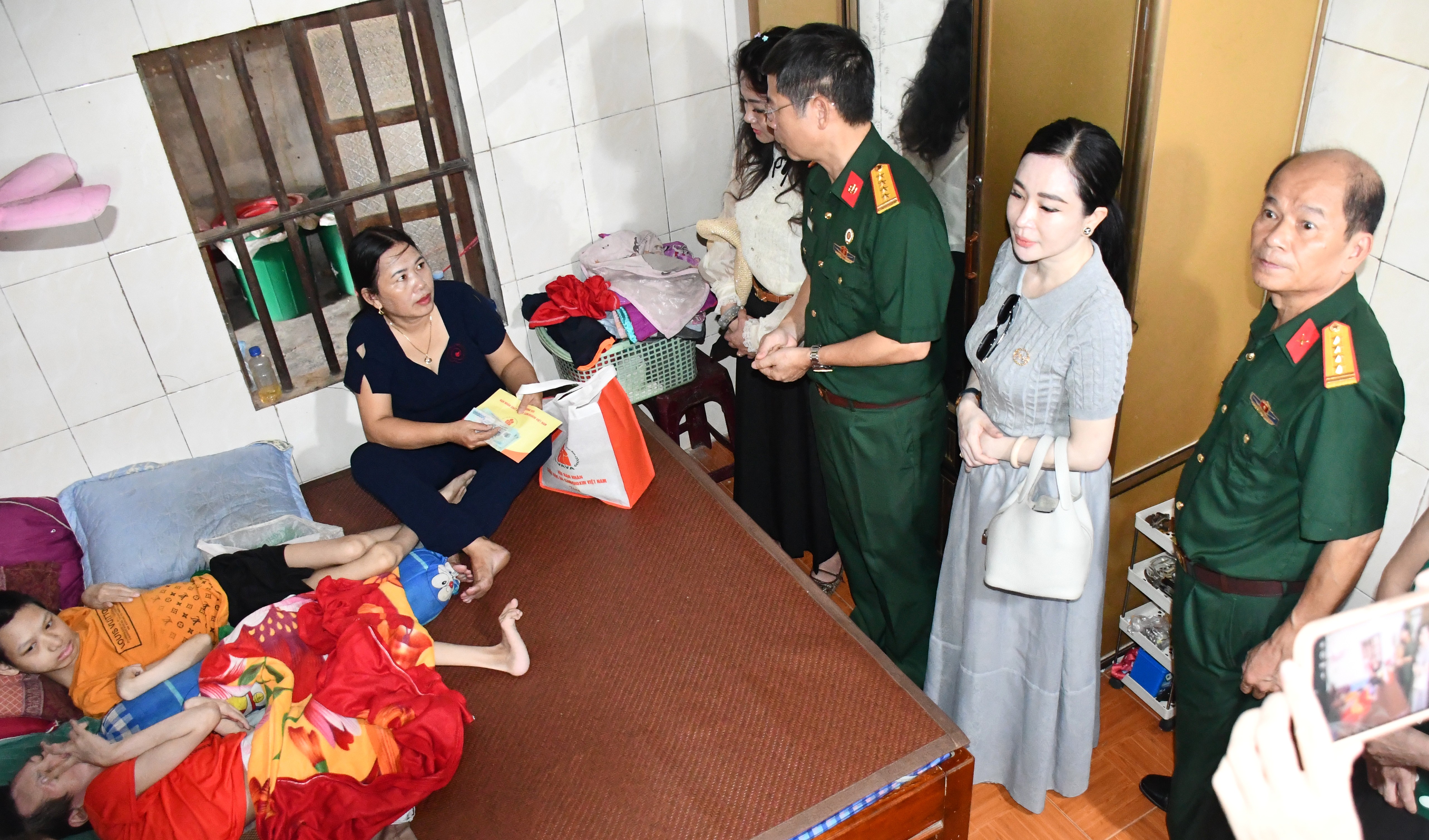 Trong dịp này, đoàn công tác đã trực tiếp đến thăm, tặng quà gia đình chị Phạm Thị Thủy, xã Cẩm Duệ, có chồng và 3 con là NNCĐDC và gia đình chị Lương Thị Nga, xã Cẩm Thạch có hoàn cảnh đặc biệt khó khăn khi chồng mất sớm, mẹ bị liệt nằm một chỗ và em trai là NNCĐDC nặng.