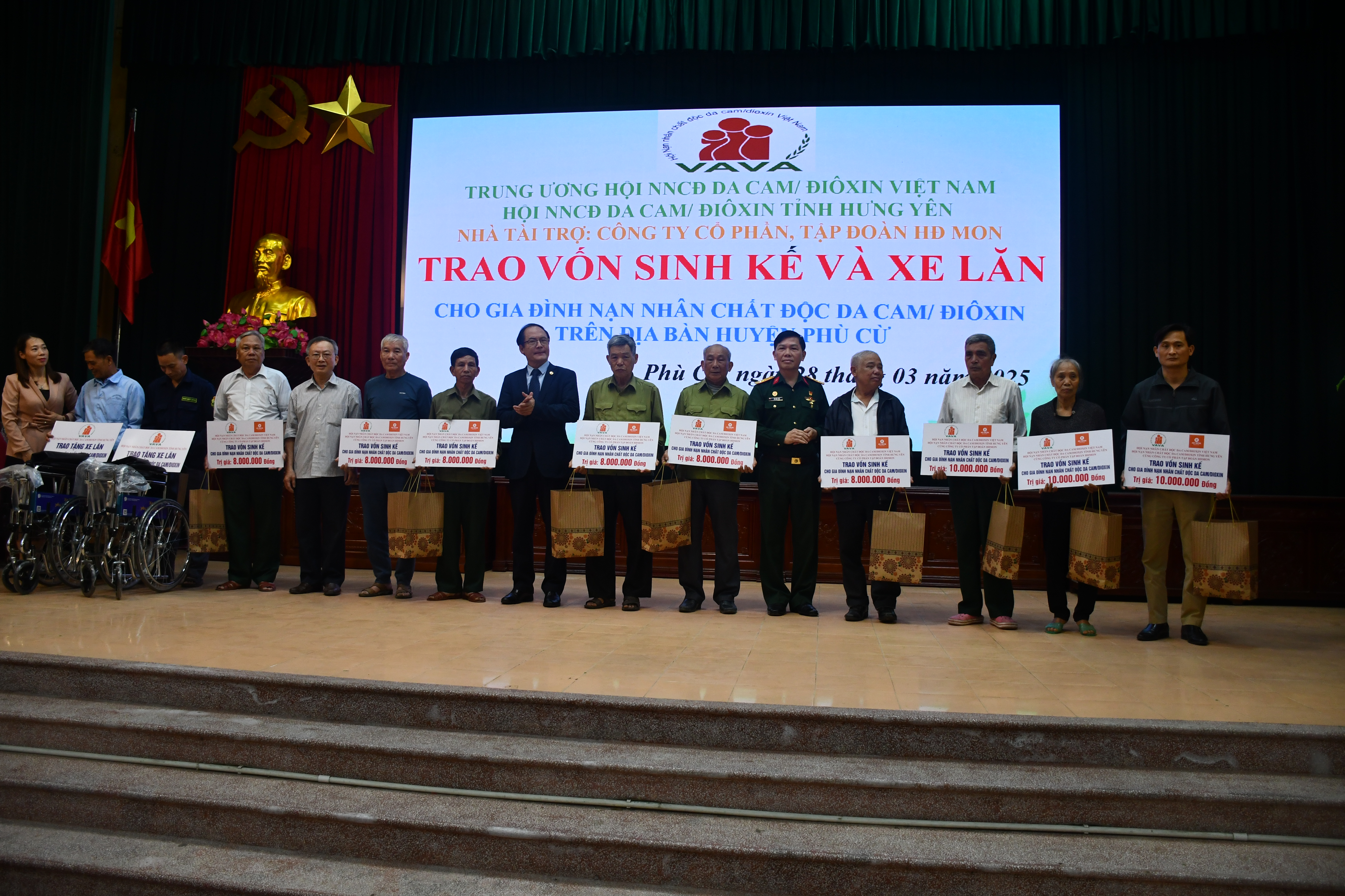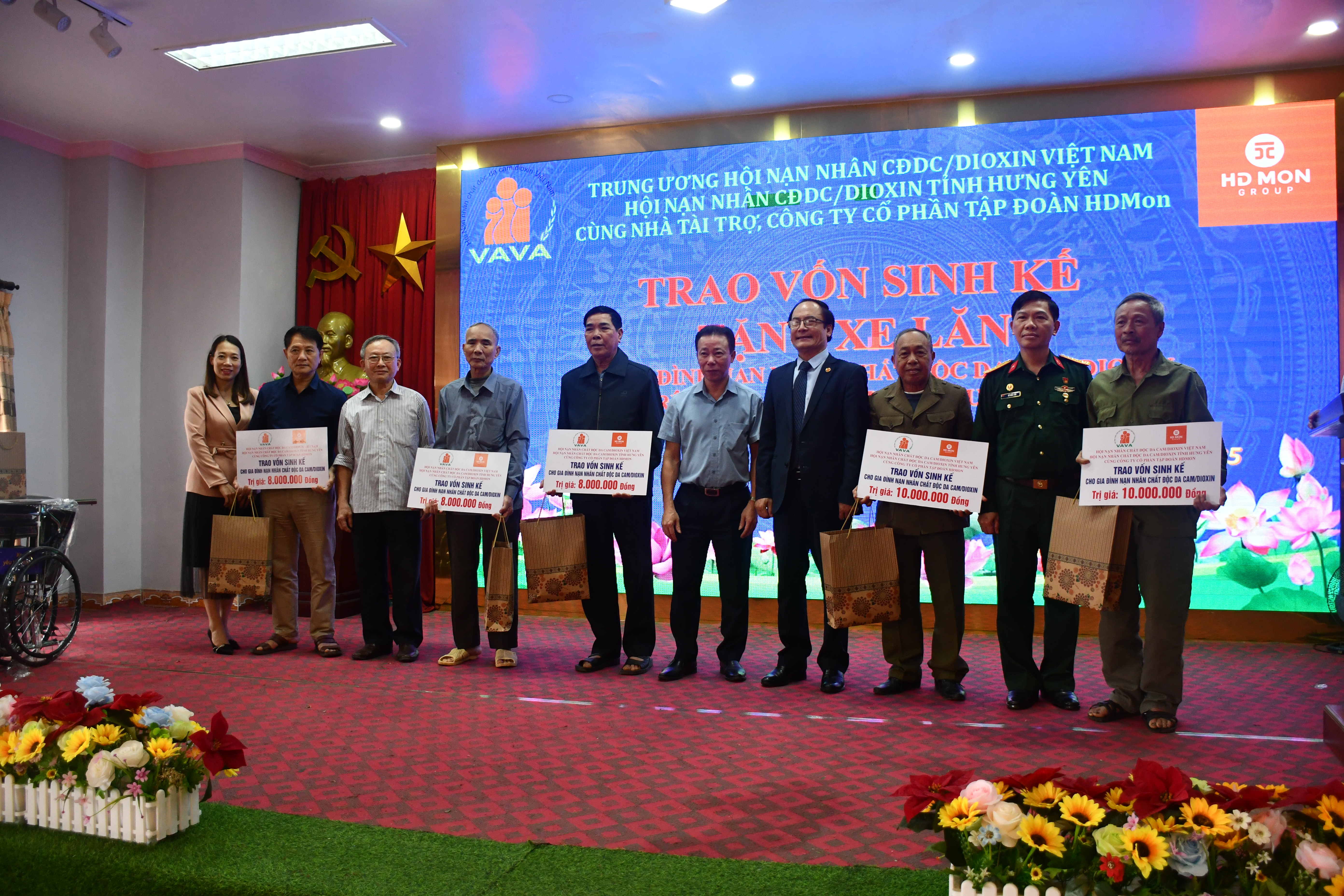 Ngày 28/3/2025, Công ty Cổ phần Tập đoàn HDMON phối hợp với Hội NNCĐDC/dioxin tỉnh Hưng Yên trao vốn sinh kế, tặng xe lăn cho NNCĐDC tỉnh Hưng Yên. Dự trao vốn sinh kế có: ông Hoàng Anh Tuấn, Trưởng ban Quốc tế - Khoa học; Đại tá Đỗ Khắc Cẩn, Chánh Văn phòng; bà Nguyễn Thị Phương, Ban Tài chính Trung ương Hội Hội NNCĐDC/dioxin Việt Nam; ông Phạm Lê Bình, Chủ tịch Hội NNCĐDC/dioxin tỉnh; ông Trần Xuân Vui, Phó bí thư Thường trực Huyện ủy Phù Cừ; ông Bùi Tuấn Anh, Phó chủ tịch UBND thành phố Hưng Yên; bà Trần Thị Hợp, Phó bí thư Đảng ủy thị trấn Trần Cao, huyện Phù Cừ và cán bộ một số đoàn thể của địa phương.